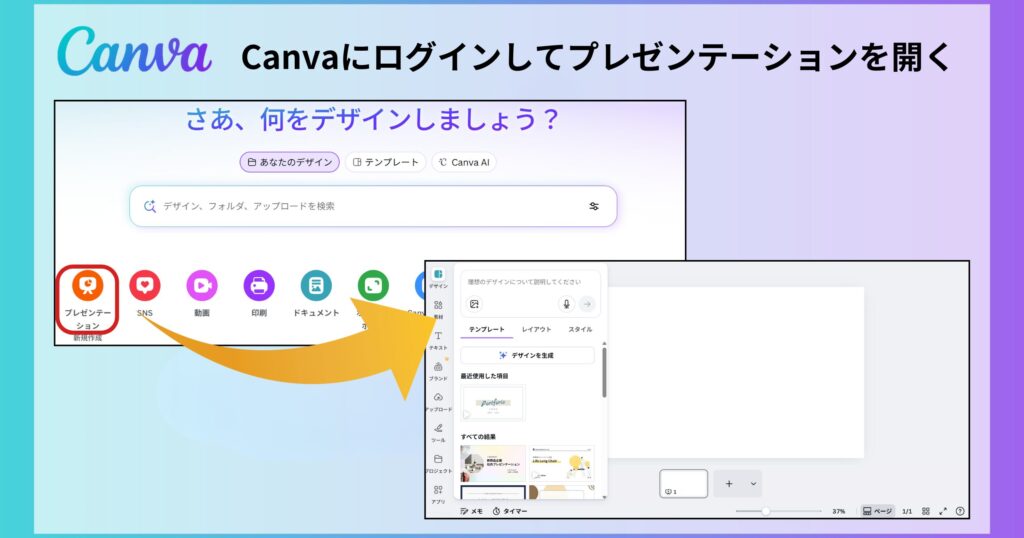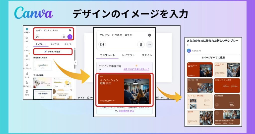 この章では、使いたい画像をCanva AIに伝えてスライドを生成する方法をご紹介します。