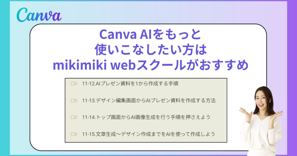 Canva AIをもっと使いこなしたい方はmikimiki webスクールがおすすめ