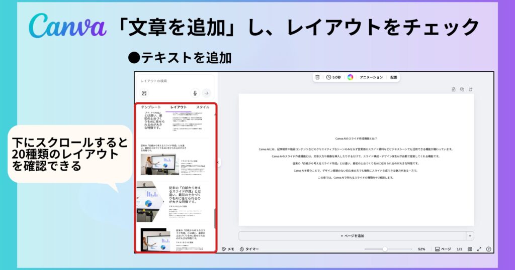 この章では、使いたい文章をCanva AIに伝えてスライドを生成する方法をご紹介します。