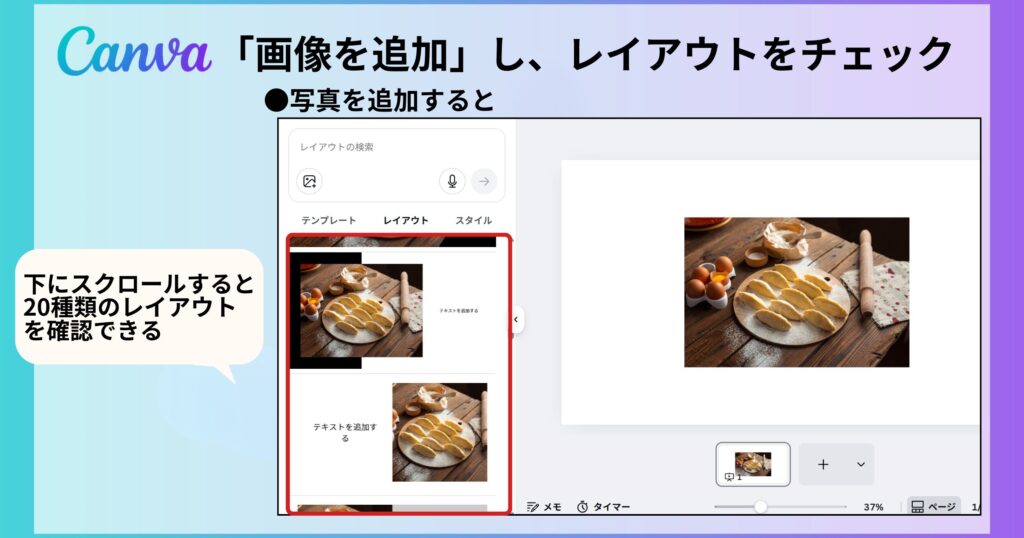 デザイン性よりレイアウト案が欲しい方や画像がすでにある方におすすめのスライド作成方法です。