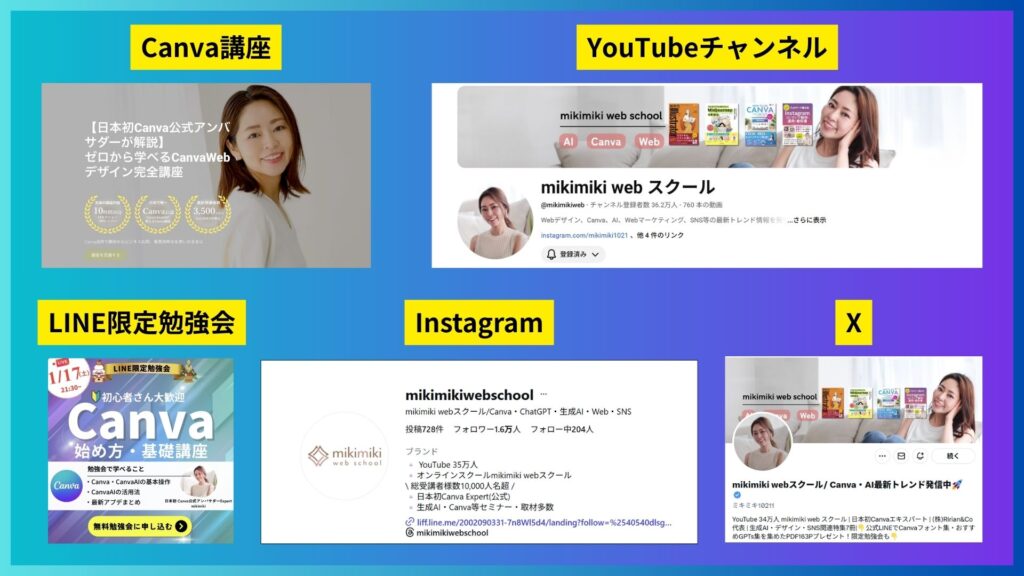 フォント選びに迷った際は、現在mikimiki webスクールの公式LINE登録でプレゼントしている「Canvaおすすめフォント集」をぜひご活用ください。