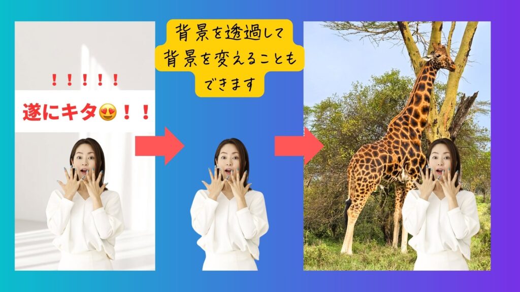 - 1.2 違い②|ワンクリックで被写体を切り抜く「背景透過機能」