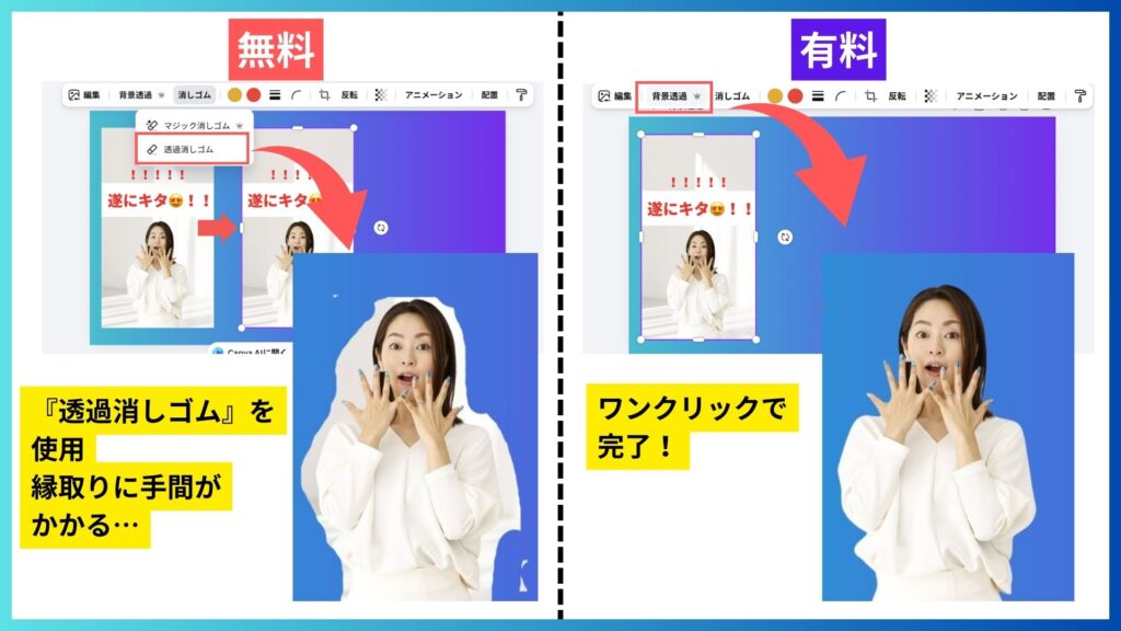 Canvaの無料版・有料版では切り抜き作業の「手間」に決定的な違いがあります。