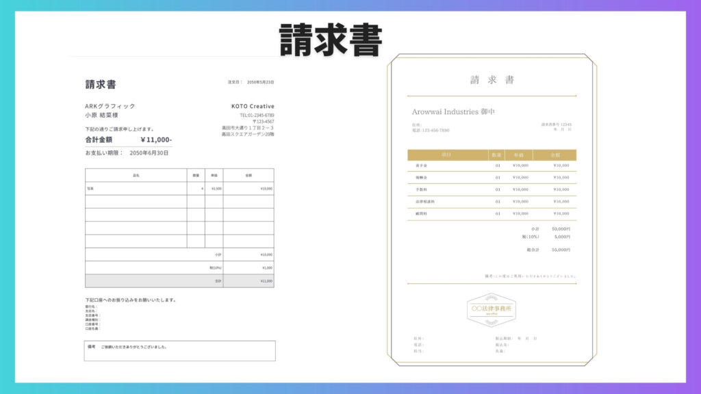 請求書や事務書類のテンプレートも多く存在しています。