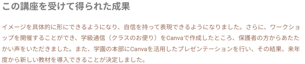 私自身も、法人・自治体向け研修や総フォロワー約50万人のSNSから寄せられるご質問、4,000名を超える受講者のみなさんが学ぶオンラインスクール内のCanva講座を通して、このポイントを知るだけで「一気に迷わなくなった」というお声を数多くいただきました。