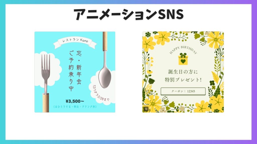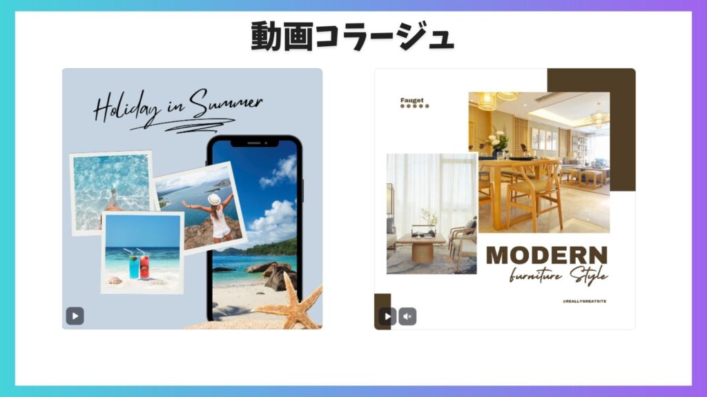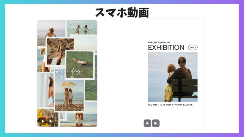 こちらもテンプレートを選んで写真や素材を入れ替えるだけで様々な雰囲気に変えられます。