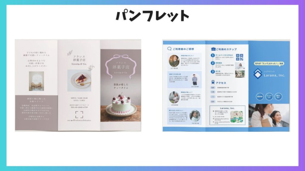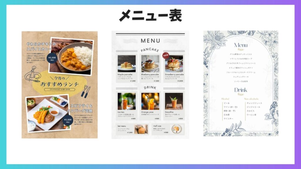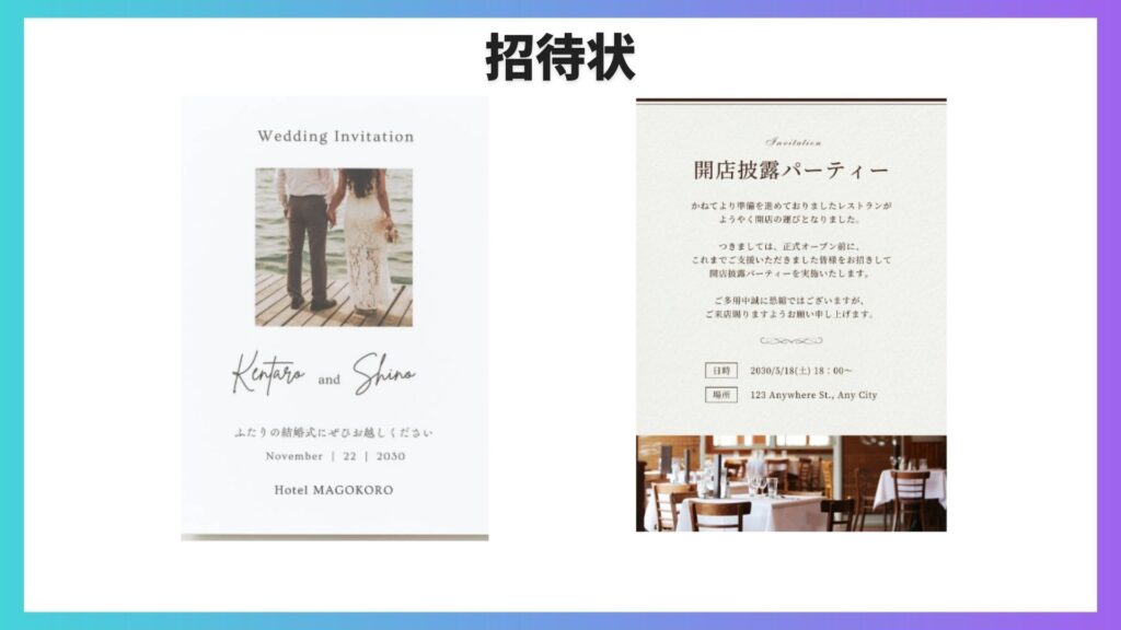 目的に合ったテンプレートを無料で選び、文字や写真を差し替えるだけで、完成まで持っていきやすいのも強みです。
