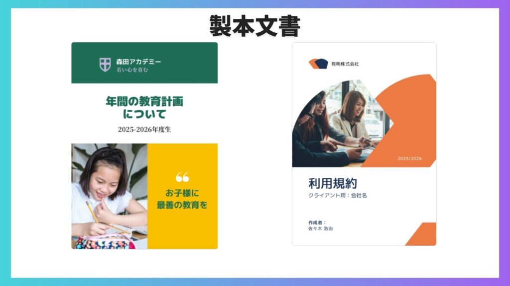 レポートや企画書、案内文などの作成時に向いています。表紙つきのレポートや、見出しの階層が整った資料テンプレートもあり、文字を入れるだけで読みやすい形になります。