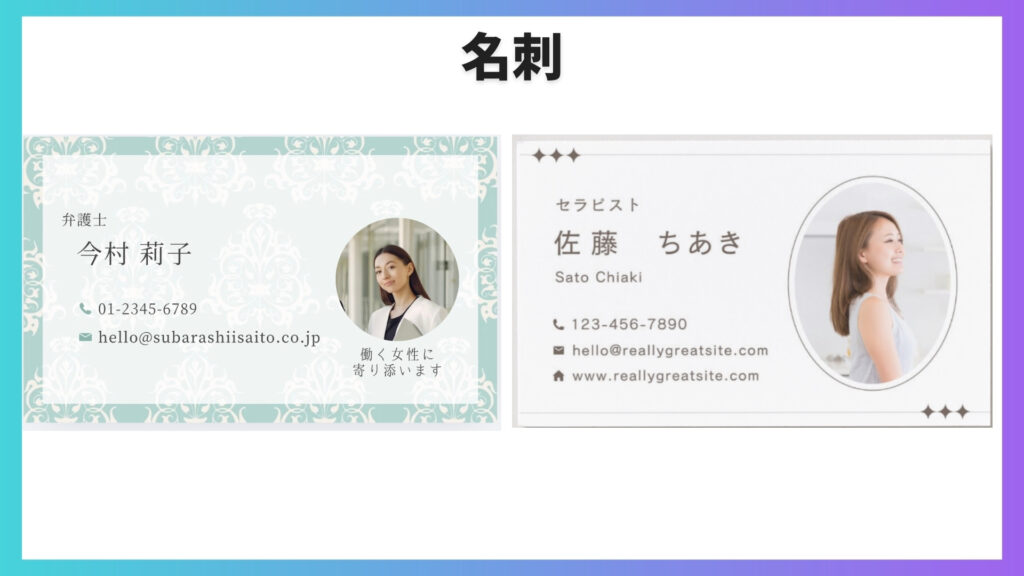テンプレートを選び、内容を書き換えるだけで名刺が完成します。