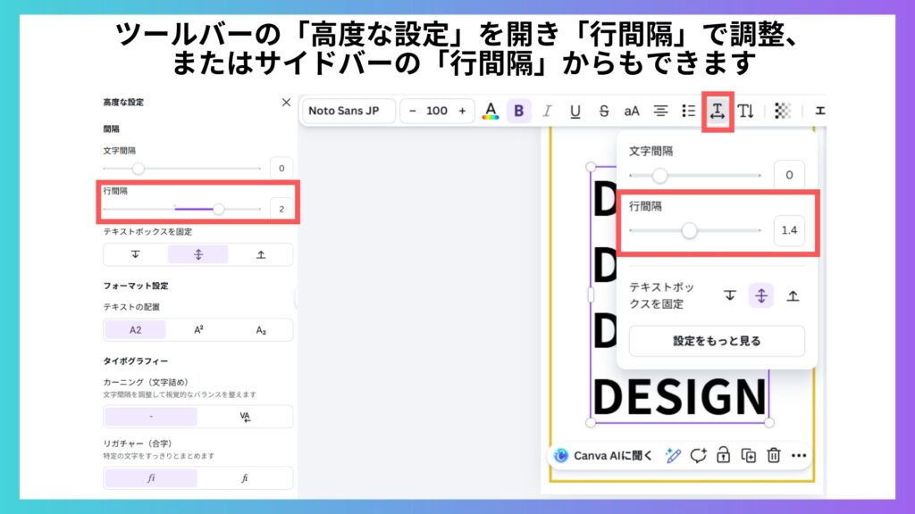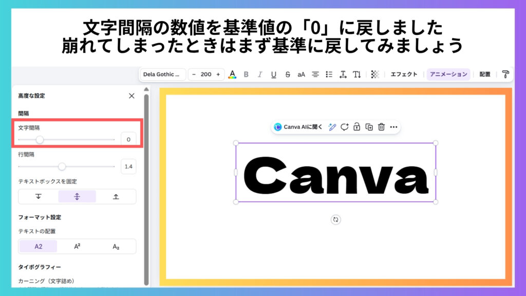Canvaで出来る文字間隔の調整方法は大きく2つ