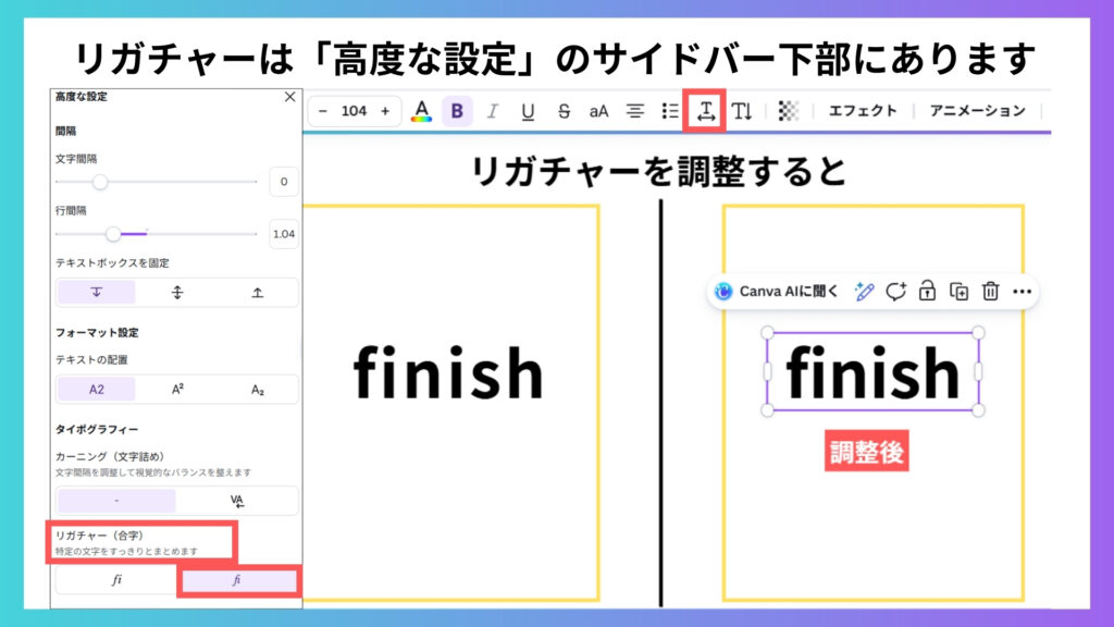 Canvaでは、フォントによってカーニングが自動調整される場合があります。