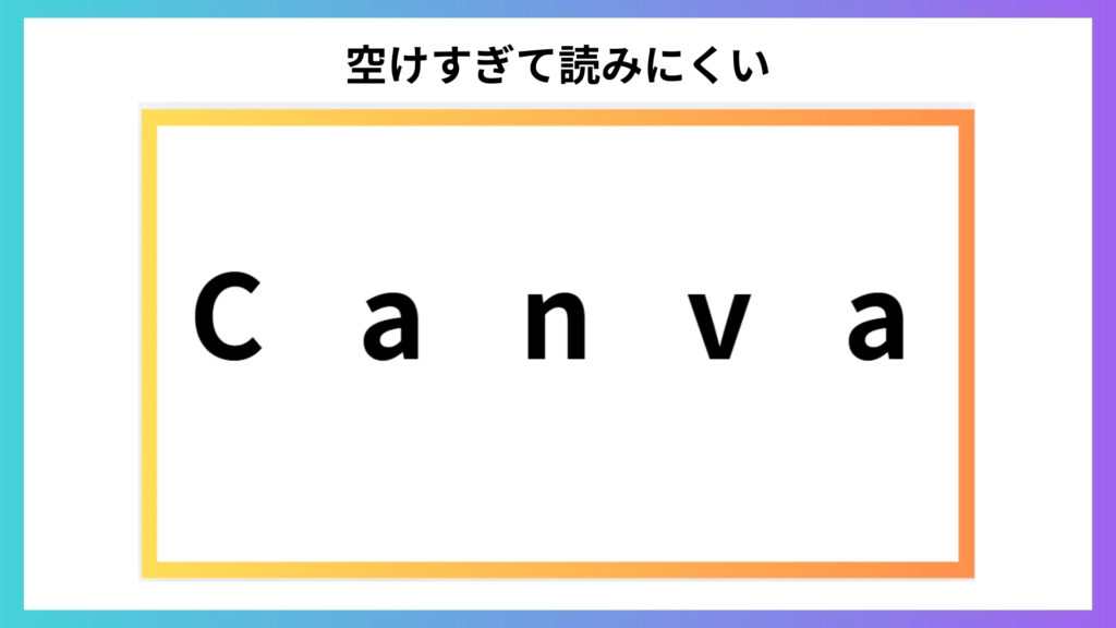 文字の間隔を広くとるとこのようにばらけた見た目になり読みにくくなってしまう場合があります。