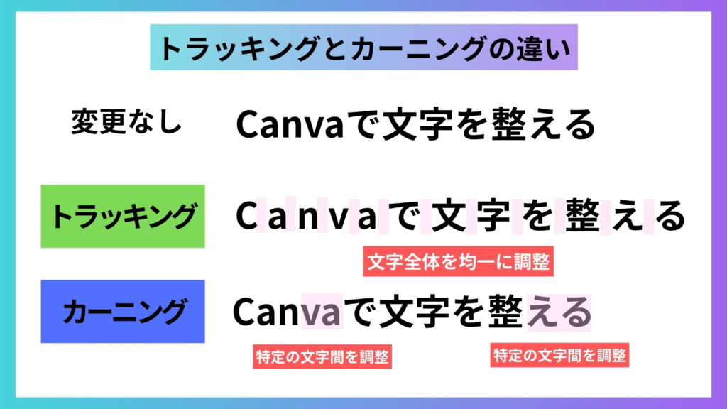 トラッキングとカーニングの違いを整理すると以下のようになります。