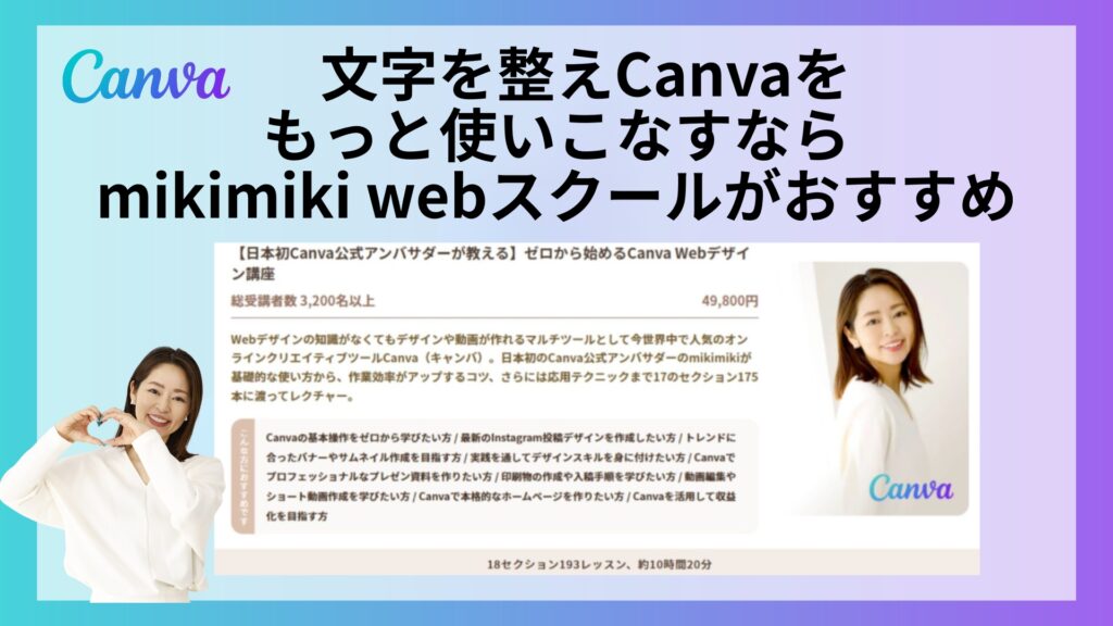 文字を整えCanvaをもっと使いこなすならmikimikiwebスクールがおすすめ