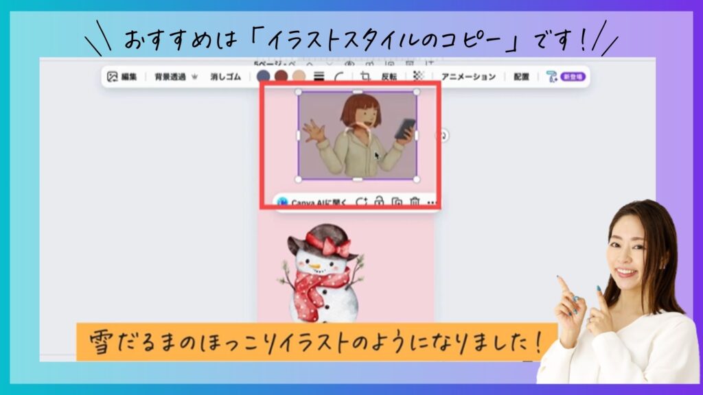 Canvaの新機能、イラストスタイルのコピーもおすすめです。