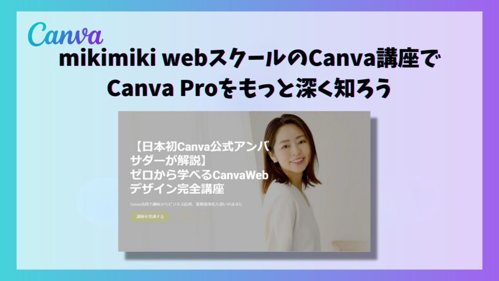 mikimiki webスクールで大人気のおすすめ講座『ゼロから学べるCanva Webデザイン完全講座』では、今回ご紹介したCanvaProについてのレッスン動画をご用意しています。