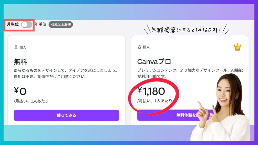 Canva Proを本格的に活用するなら、年払いプランが断然お得です。