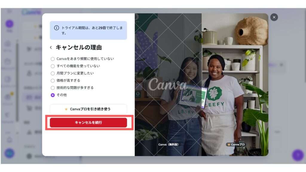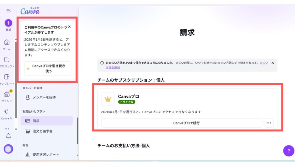 - 支払い済みの期間終了まではCanva Pro機能を利用可能