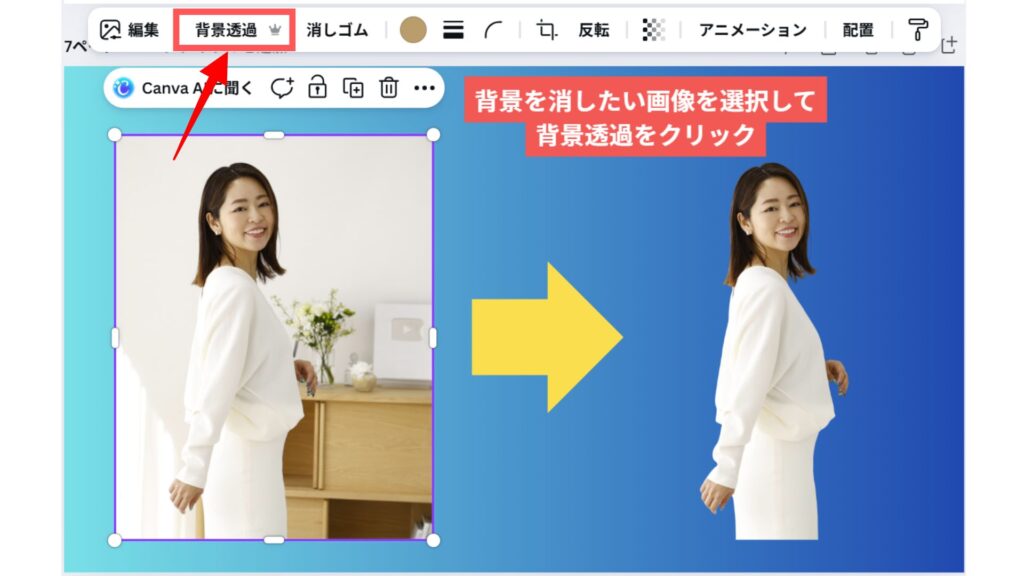 Canva Proの人気機能が背景透過機能です。