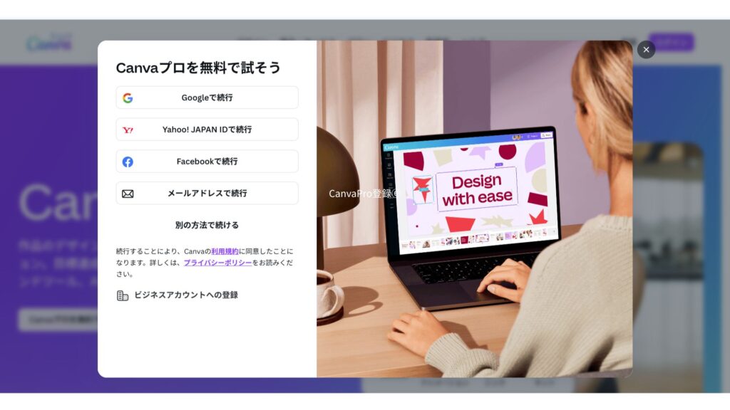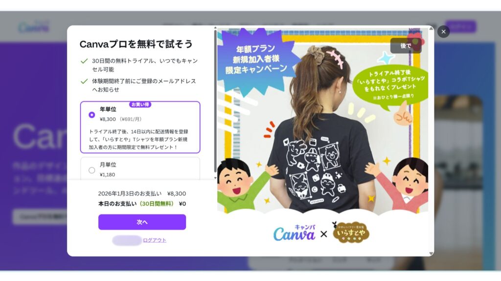 こちらのサイトからCanvaProをご登録いただくと、30日間の無料トライアルが適用されてお得です。