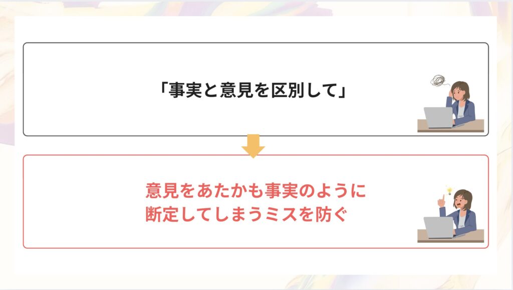 ⑥「事実と意見を区別して」