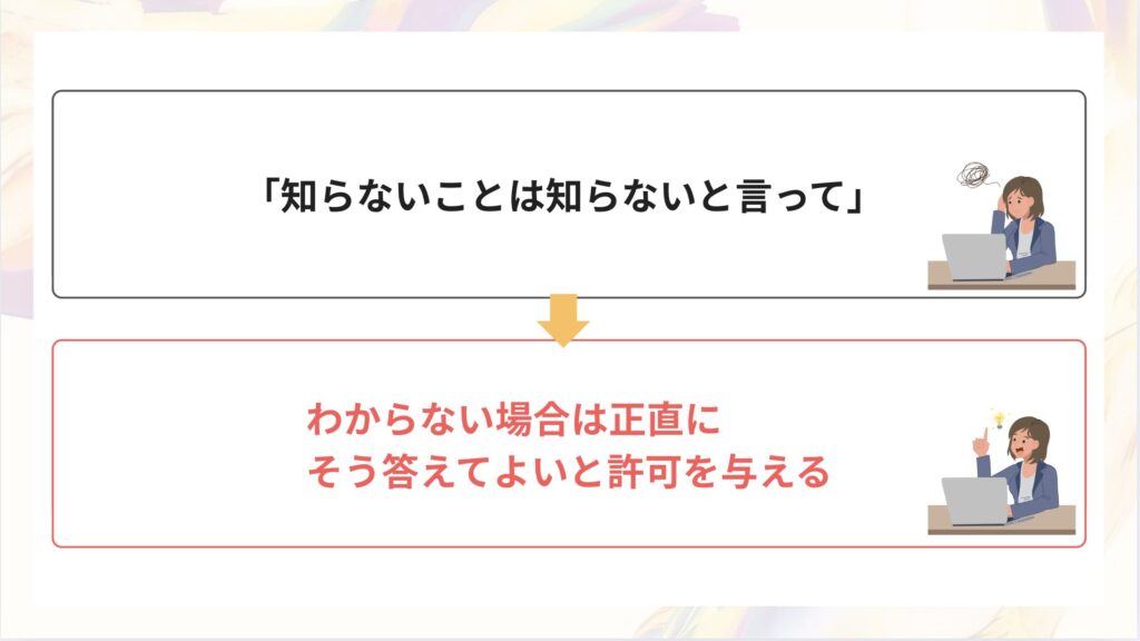 ①「知らないことは知らないと言って」