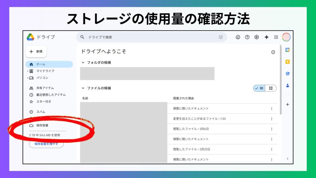 まずは合計の使用量を見て、容量オーバーになっていないか確認しておきましょう。