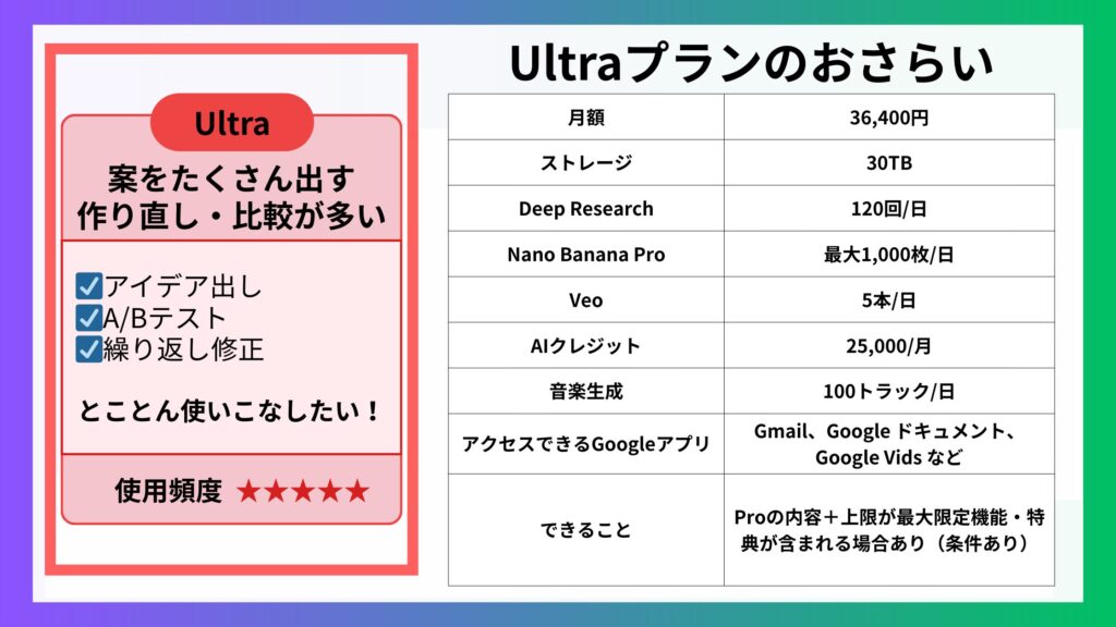 ※本記事では読みやすさのため、Google AI Plus / Google AI Pro / Google AI Ultra をそれぞれ Plus / Pro / Ultra と表記して解説します。