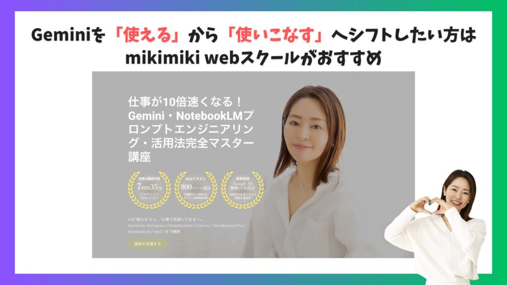 Geminiを「使える」から「使いこなす」へシフトしたい方はmikimiki webスクールがおすすめ