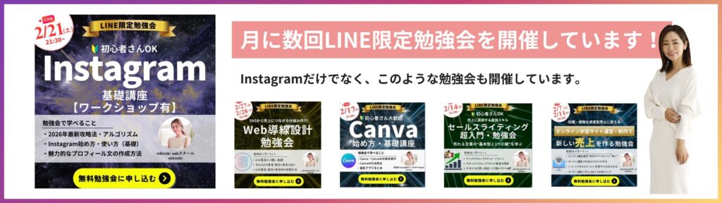 mikimiki webスクールでは、LINE限定勉強会を開催しています。