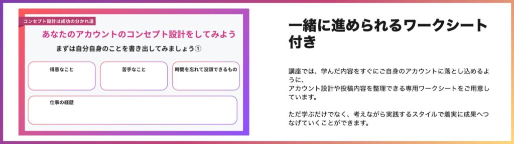 mikimiki webスクールインスタ講座では、ジャンルの決め方やコンセプト設計についても丁寧に解説しています