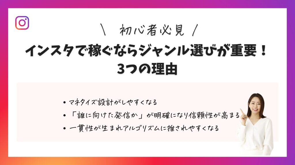 ここでは、インスタで稼ぐためにジャンル選びが重要な理由を3つご紹介します。