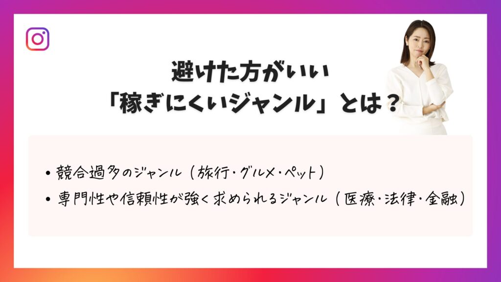 「インスタで稼ぐにはどんなジャンルが良いの?」