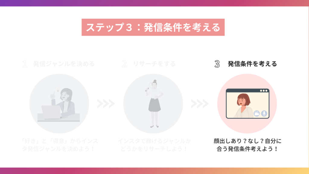 ステップ3 | 顔出しあり?なし?自分に合う発信条件考えよう
