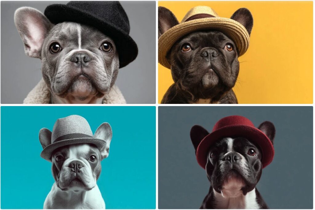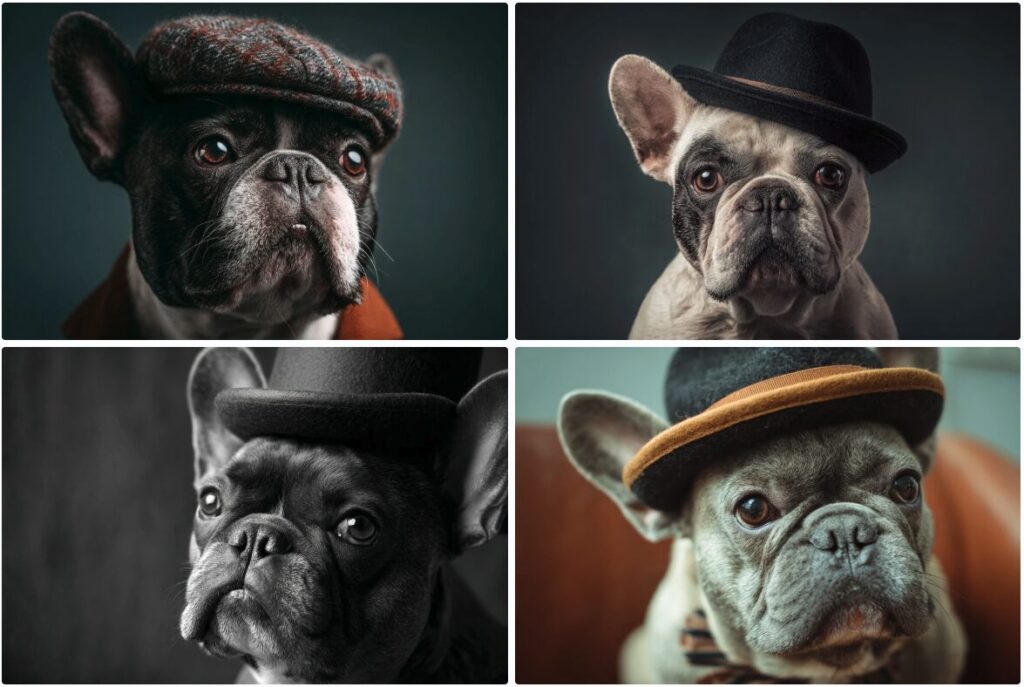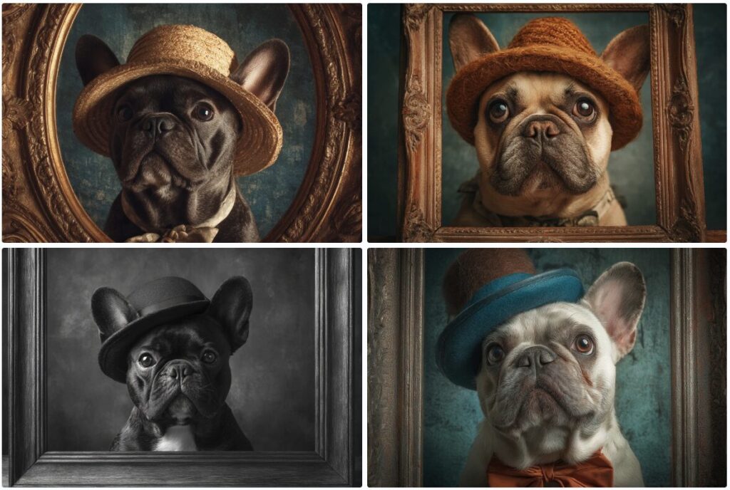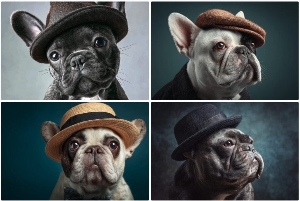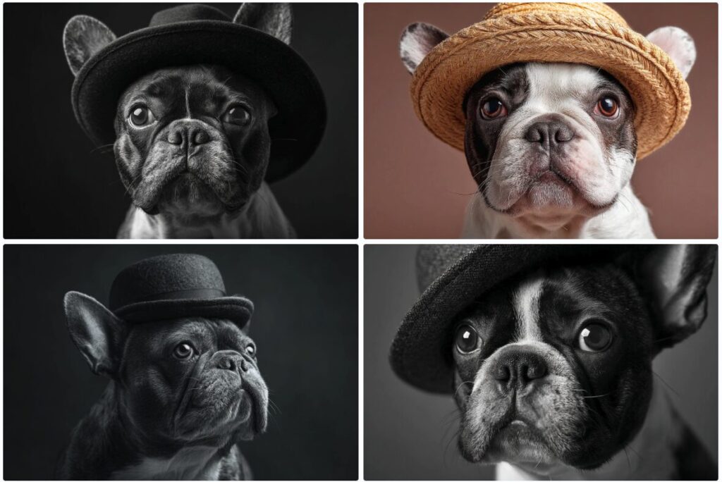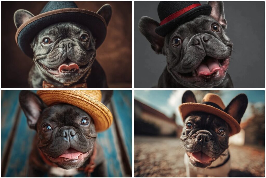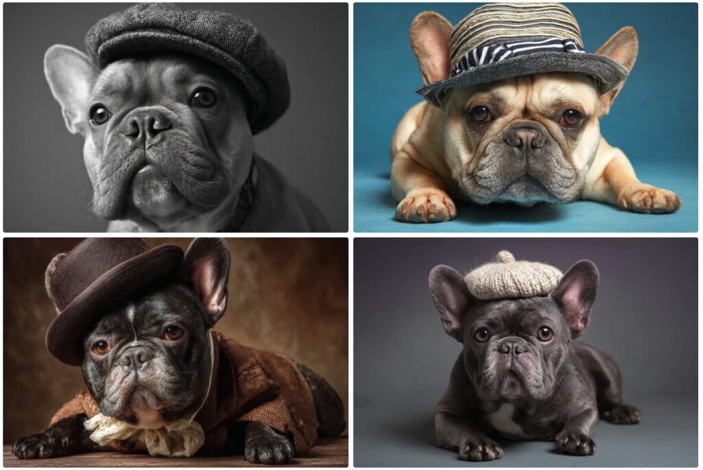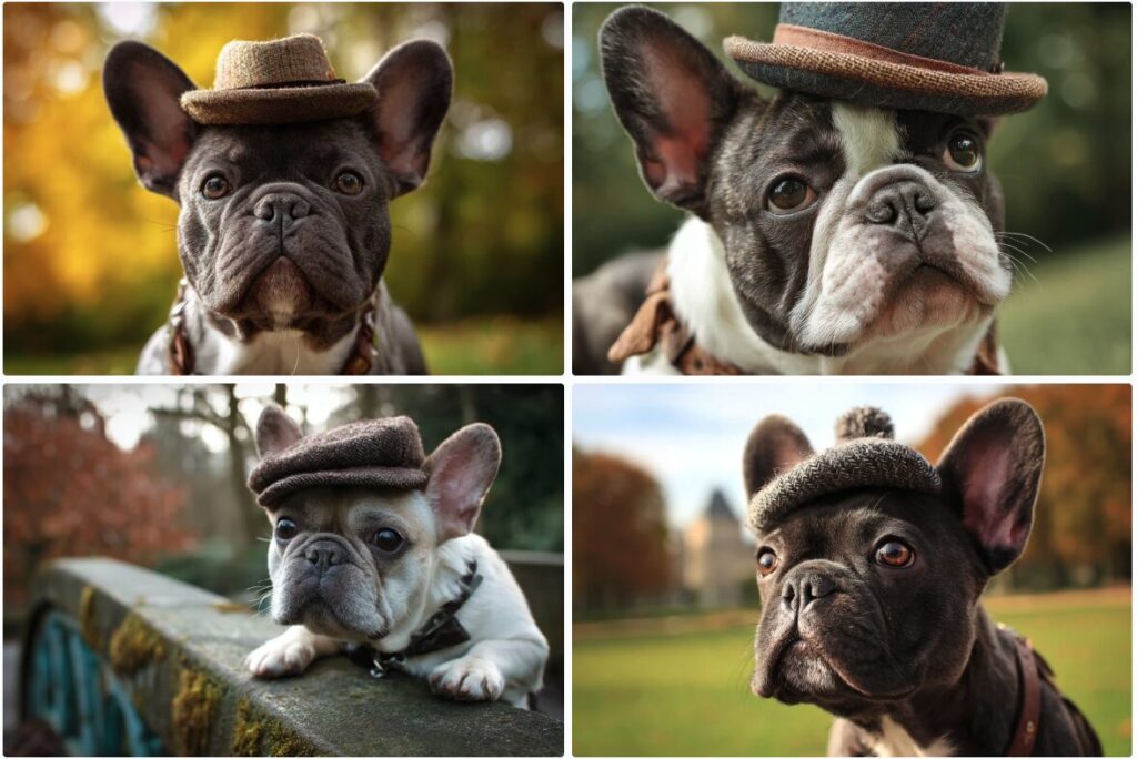 (帽子をかぶったフレンチブルドッグ、フレーミング構図)