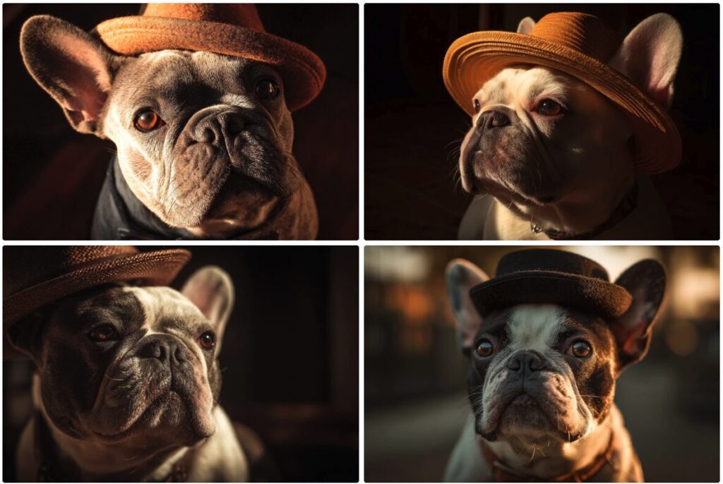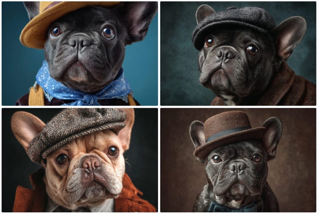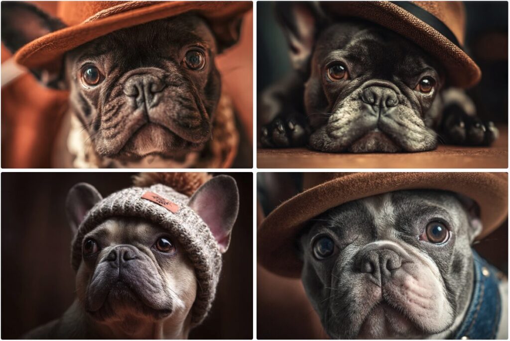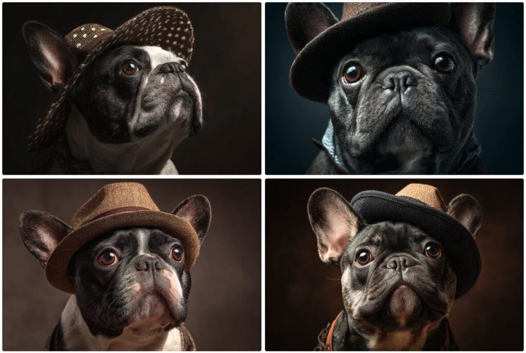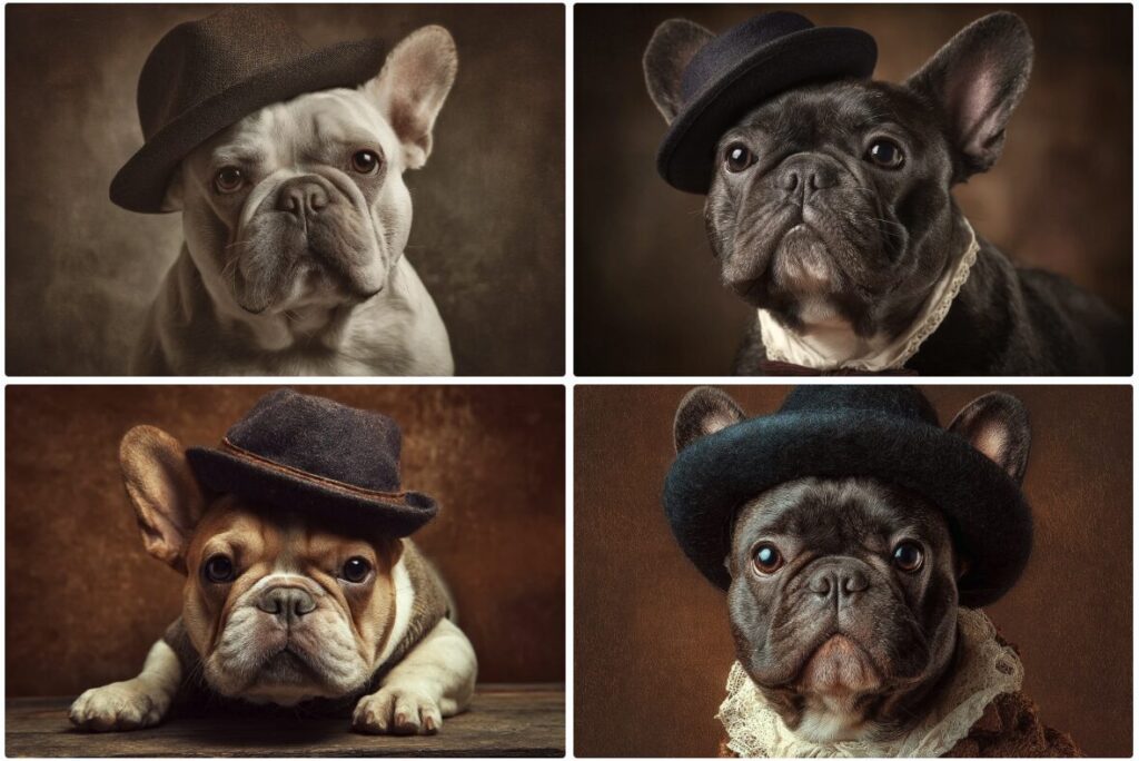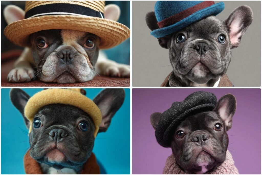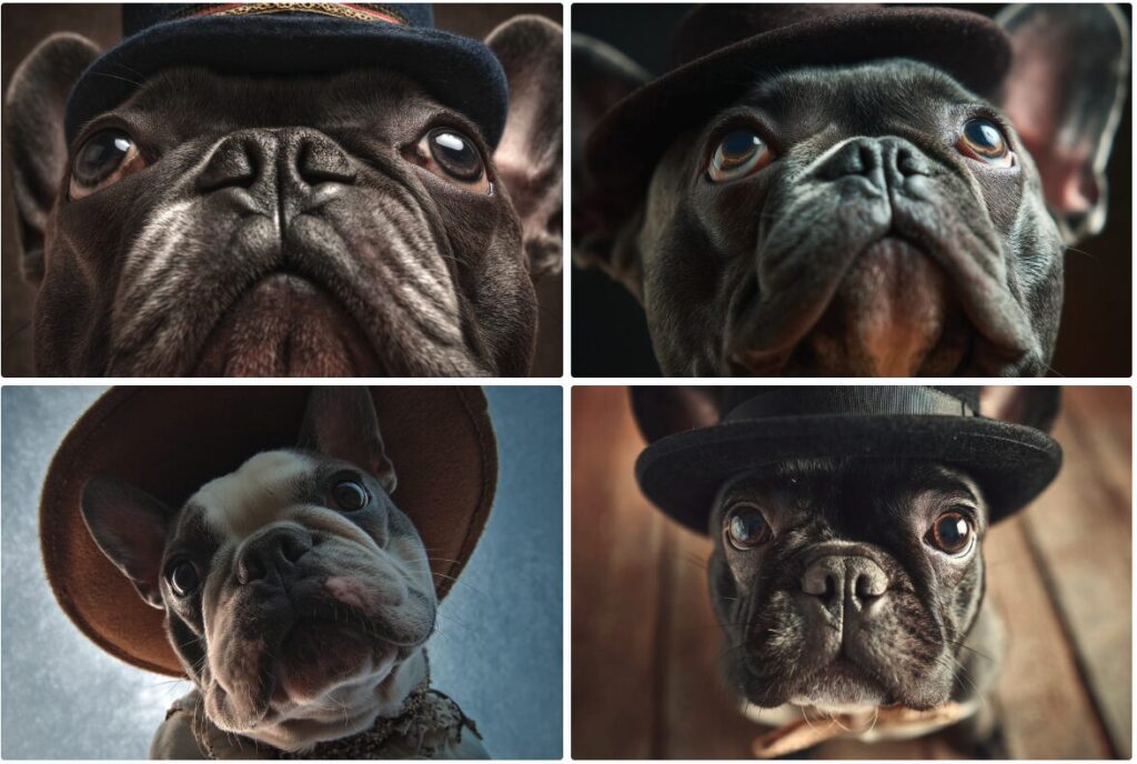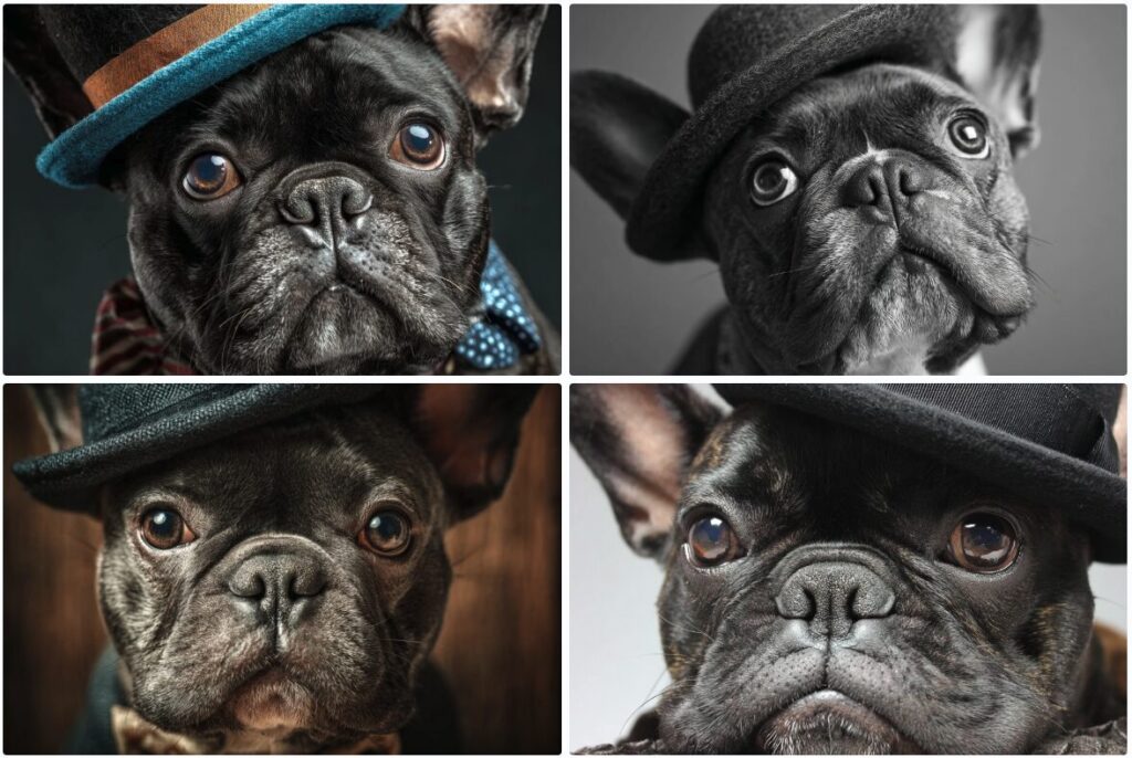 (帽子をかぶったフレンチブルドッグ、フレーミング構図)