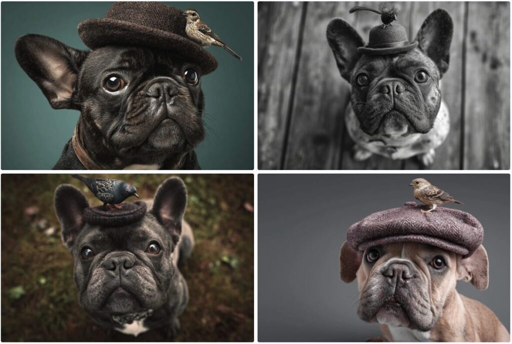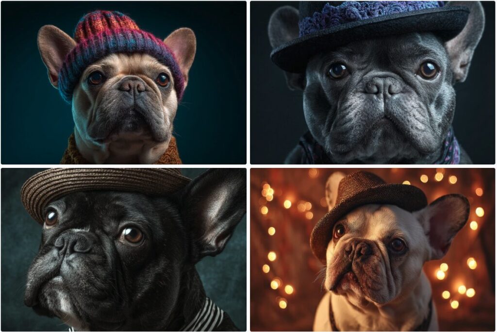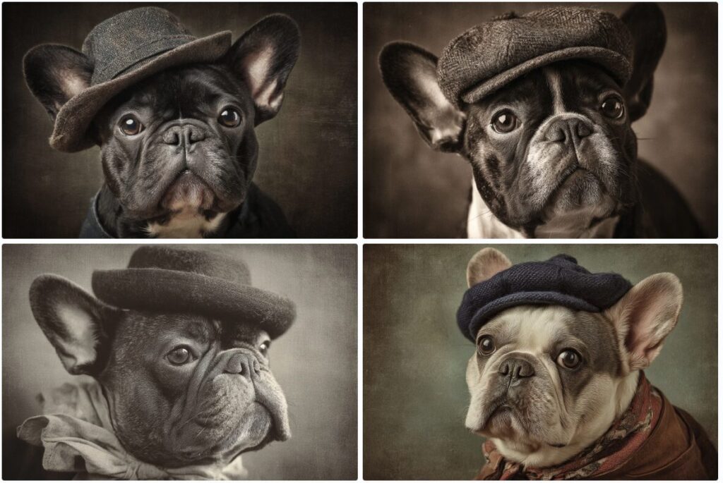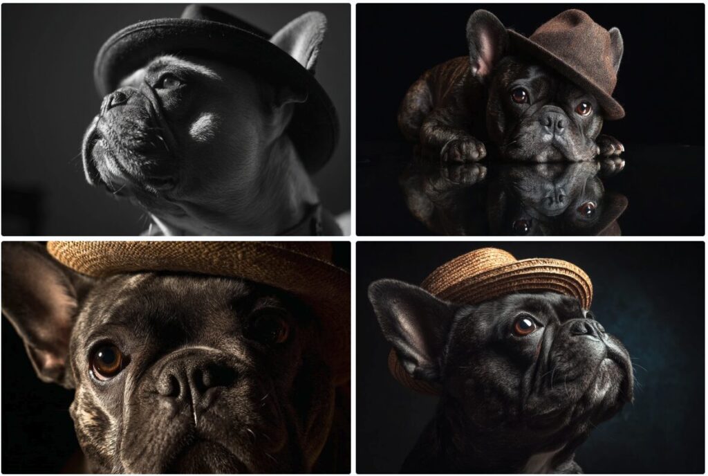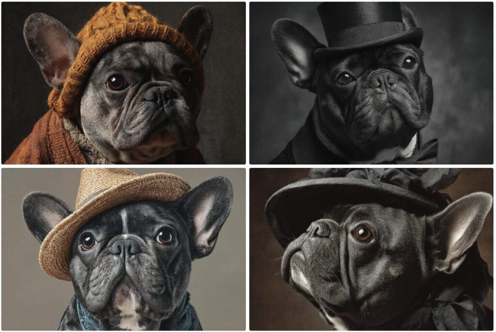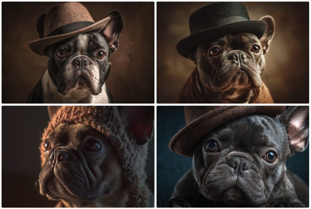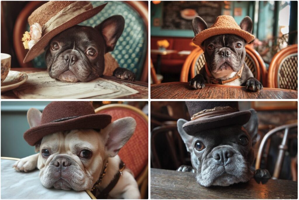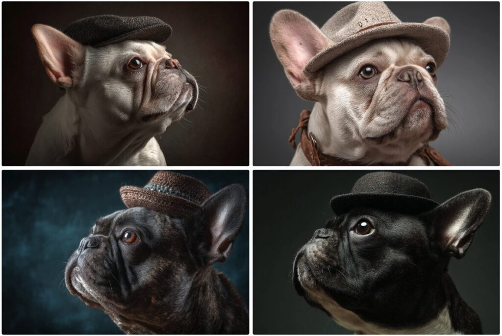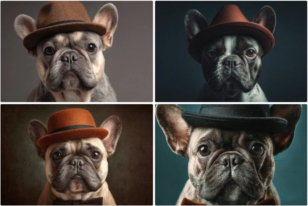 (帽子をかぶったフレンチブルドッグ、フレーミング構図)