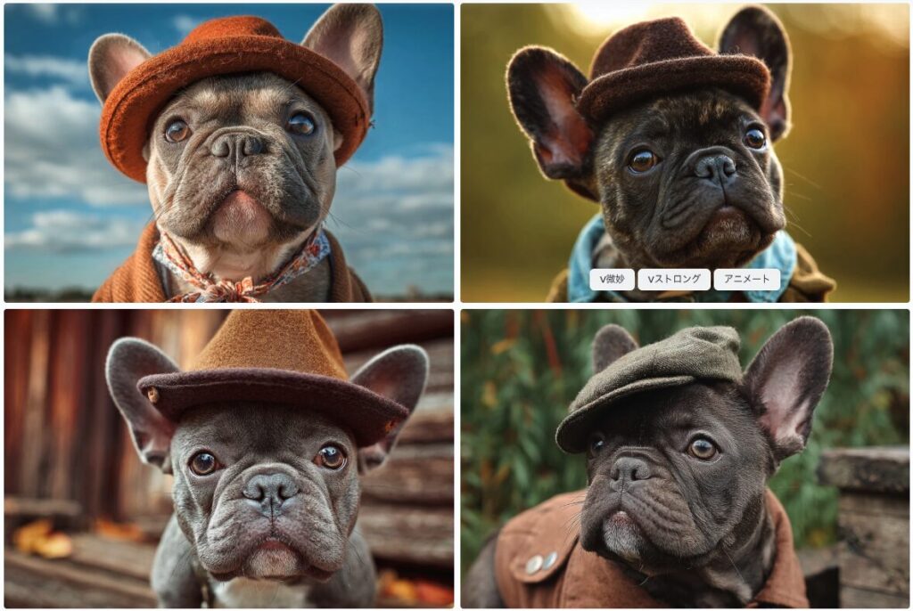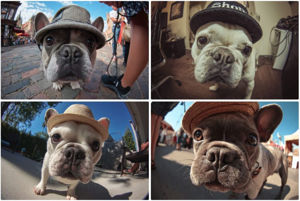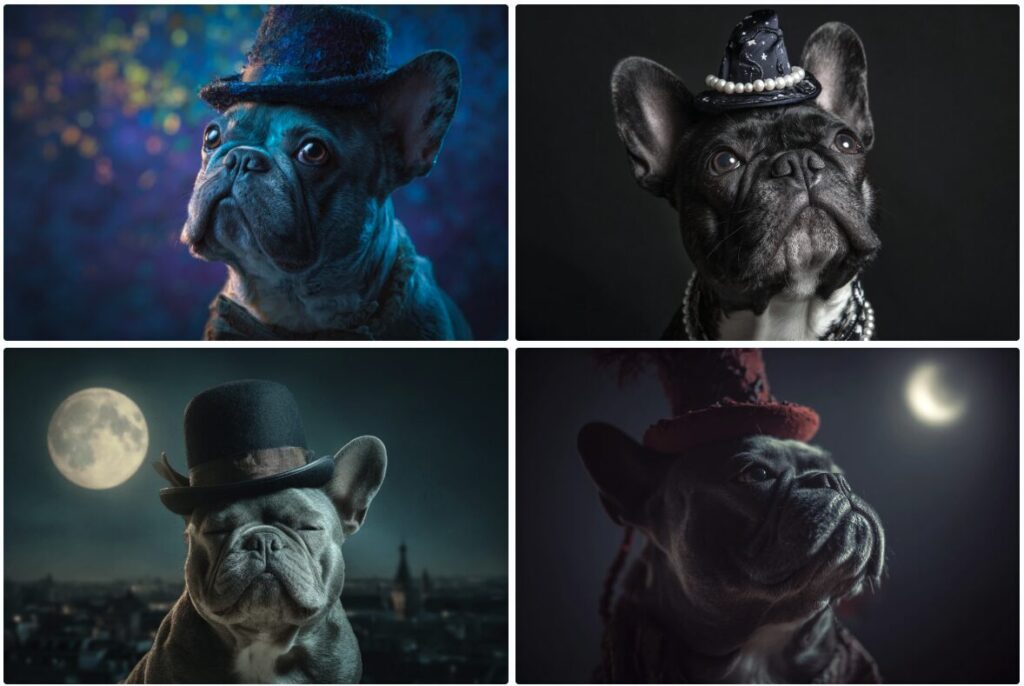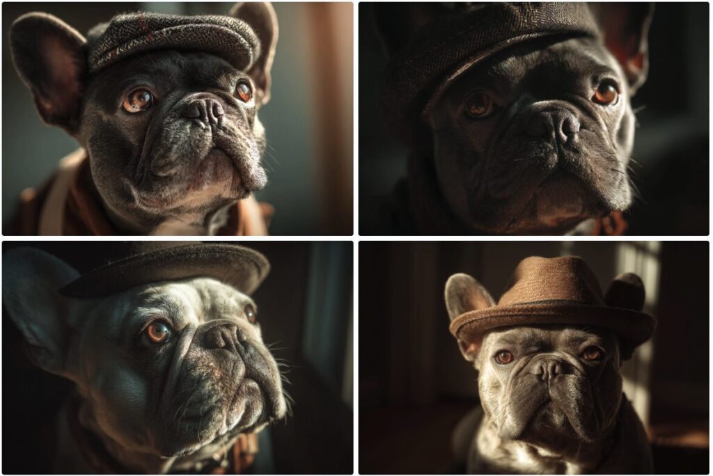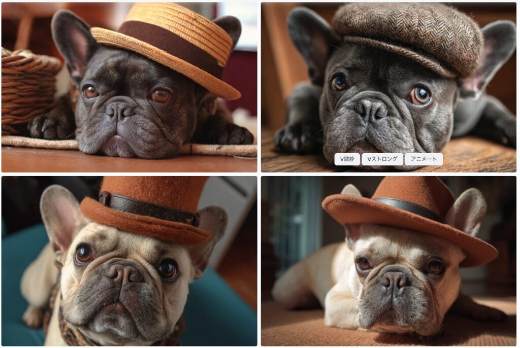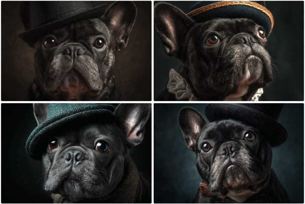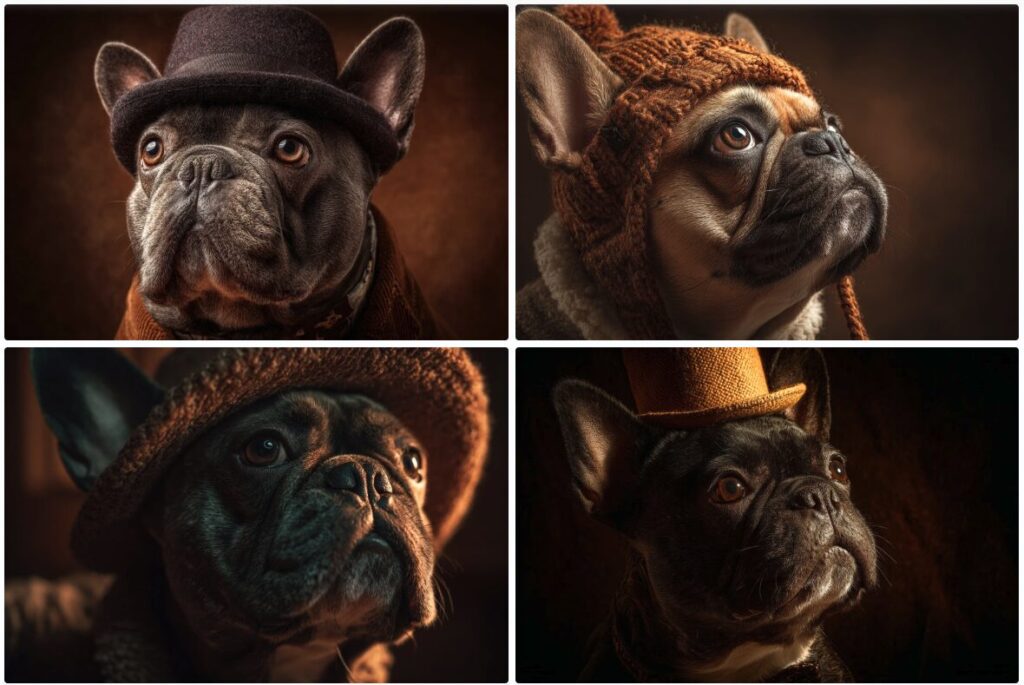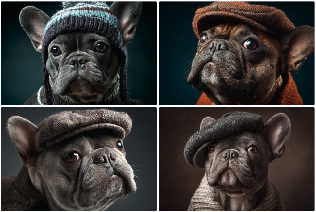 (帽子をかぶったフレンチブルドッグ、フレーミング構図)