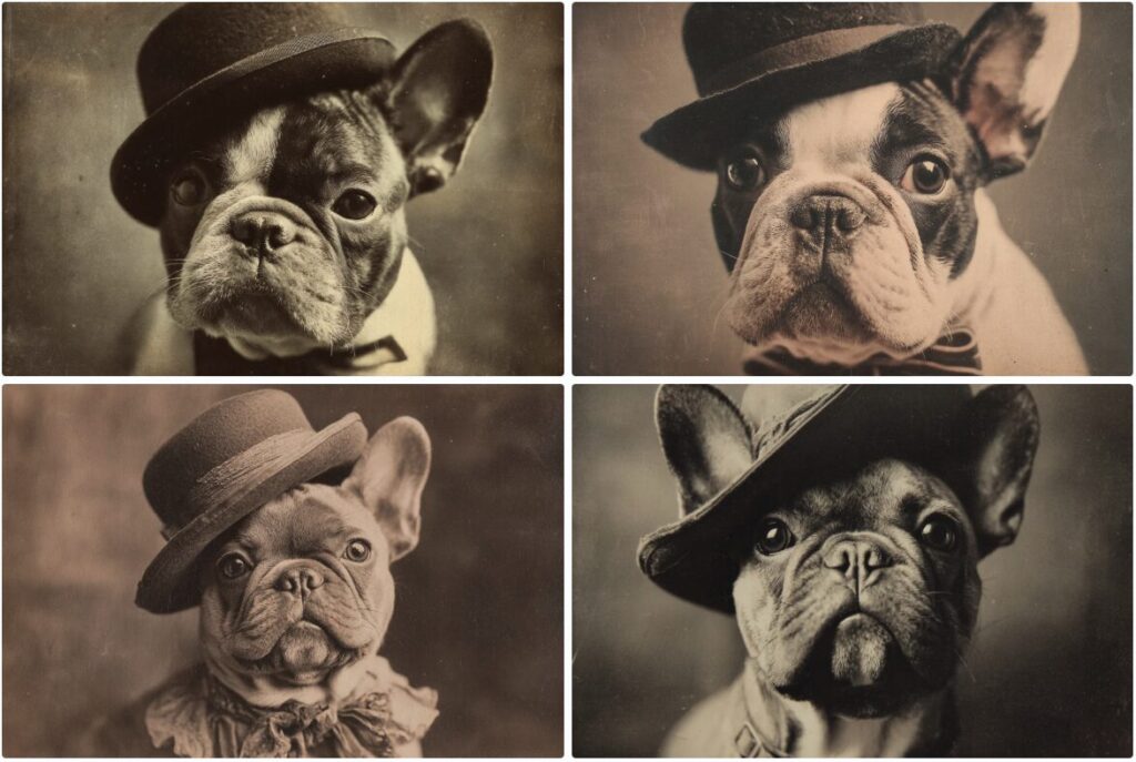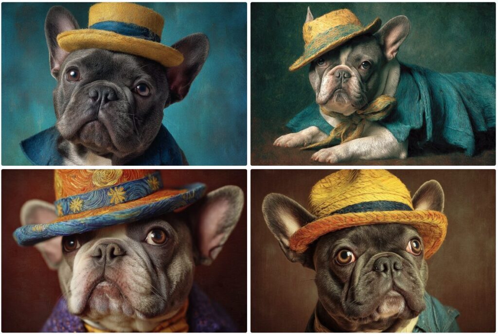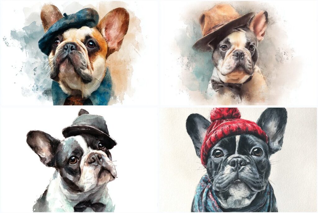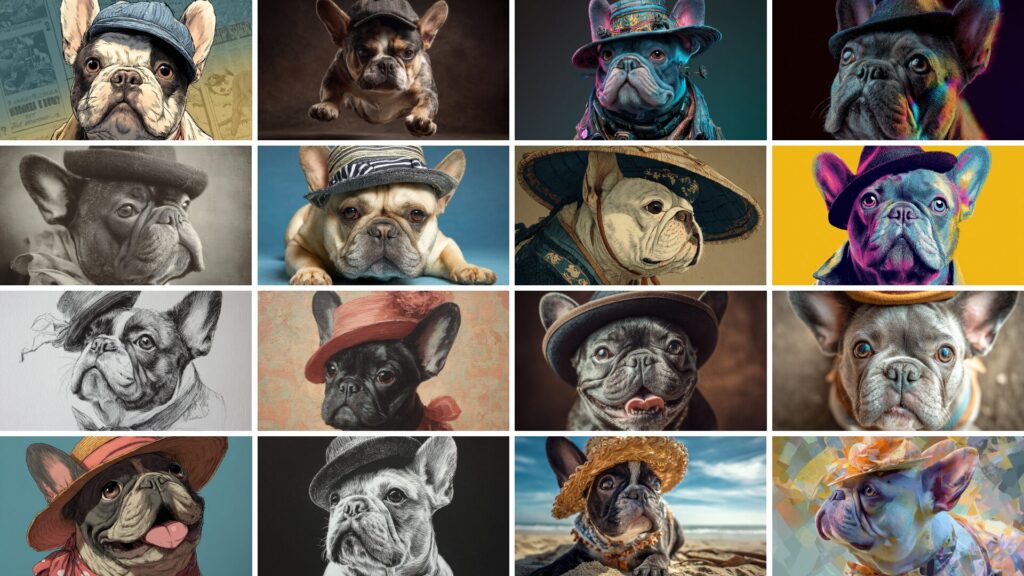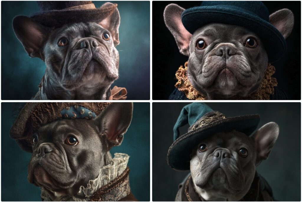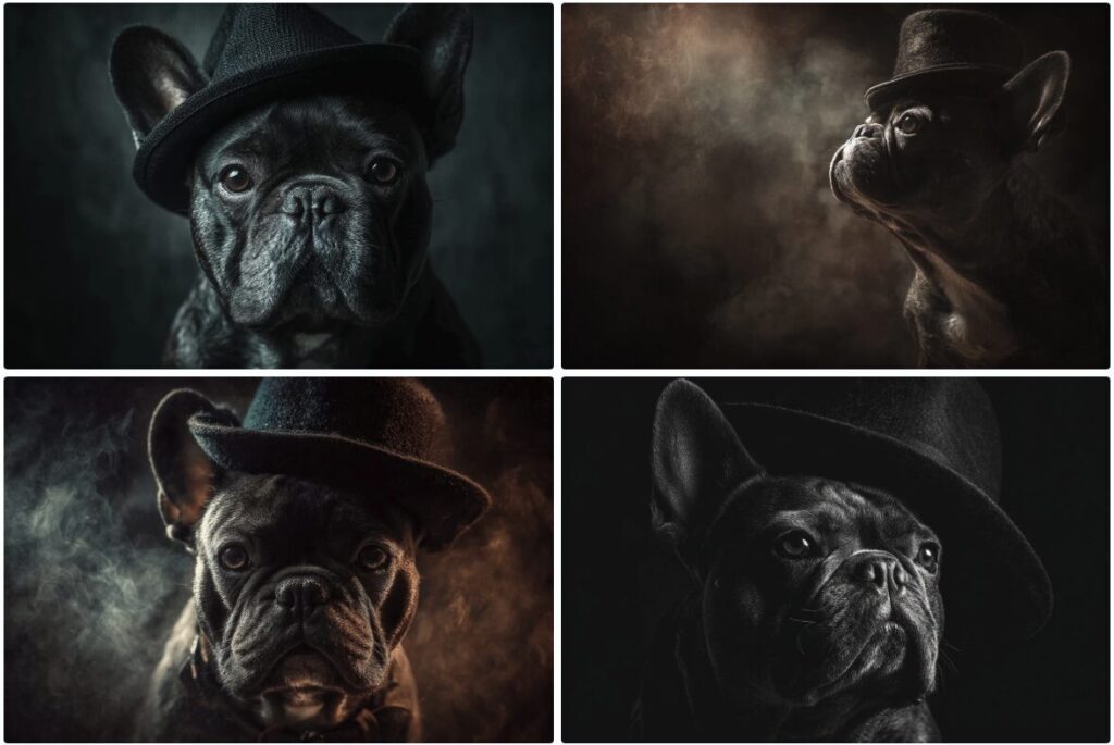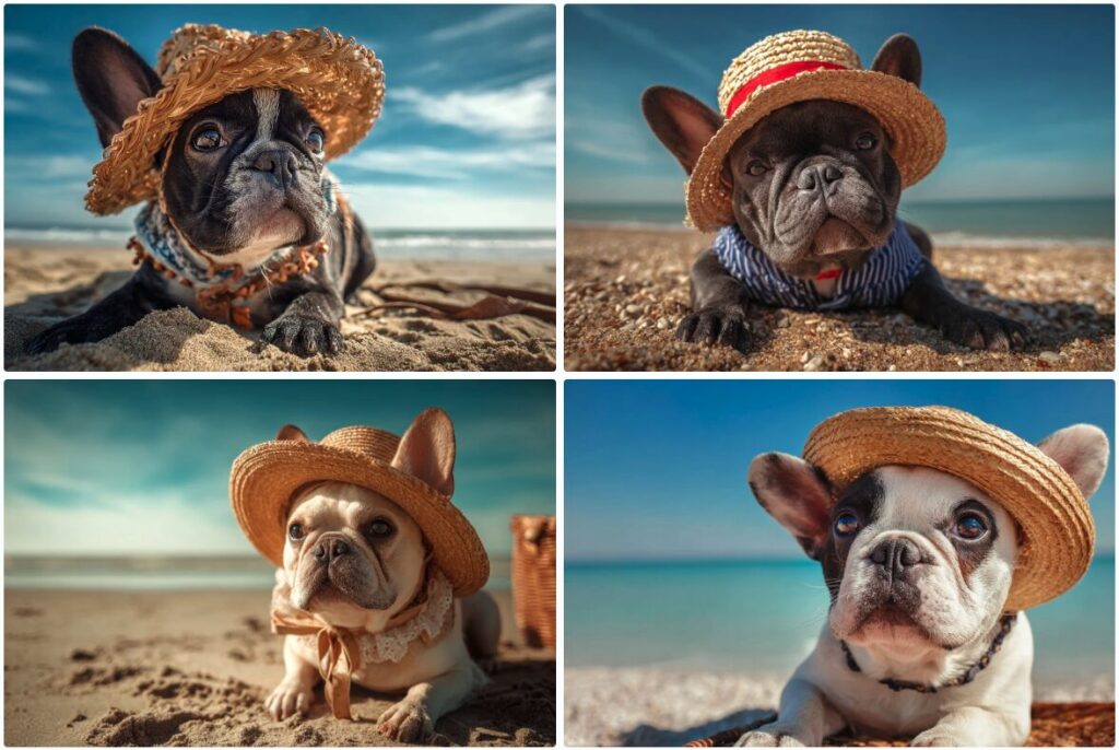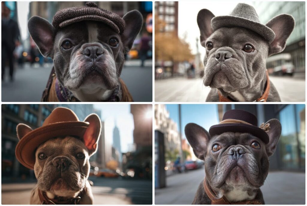(帽子をかぶったフレンチブルドッグ、フレーミング構図)