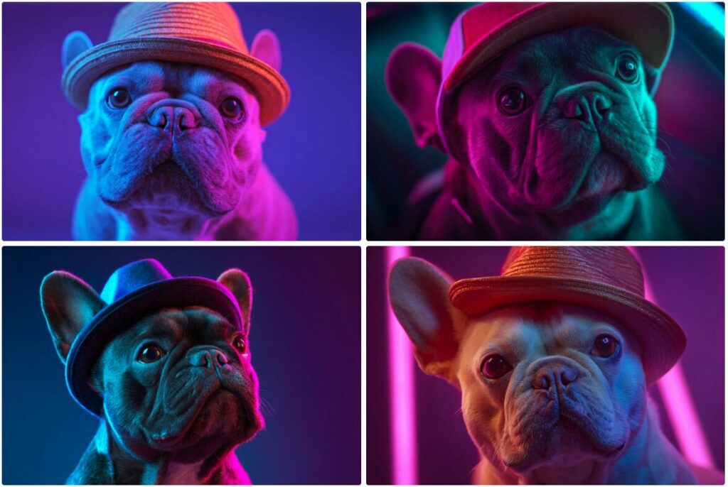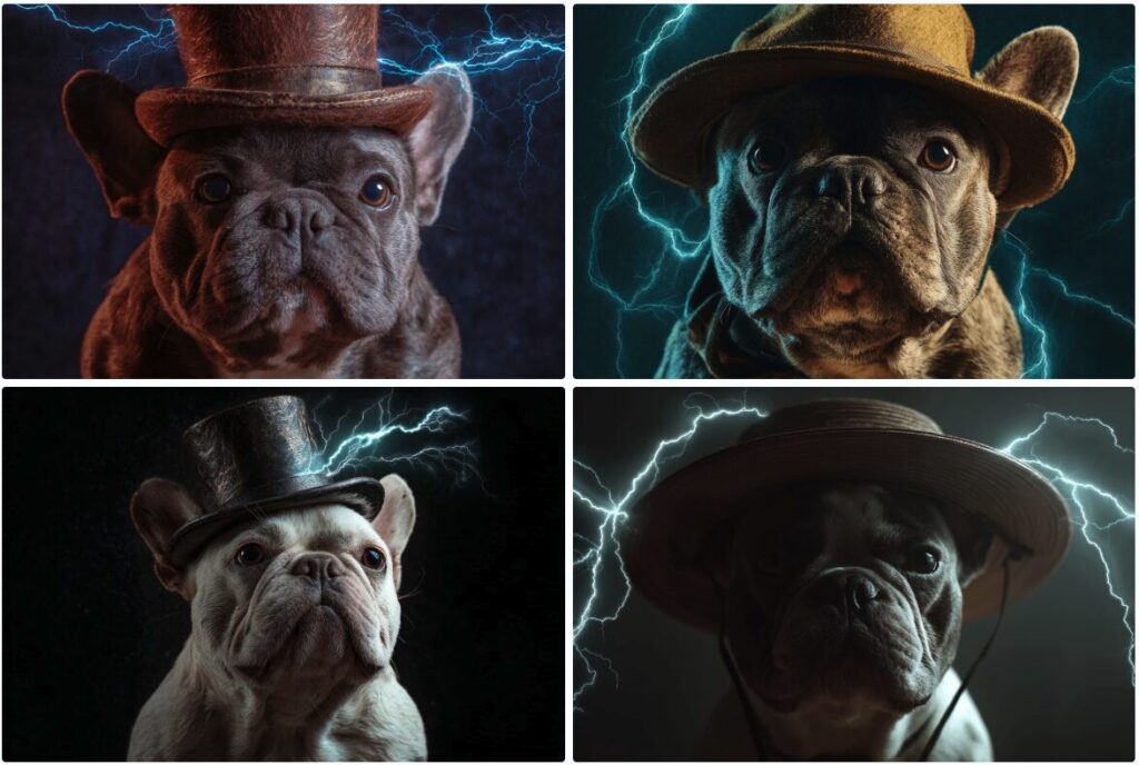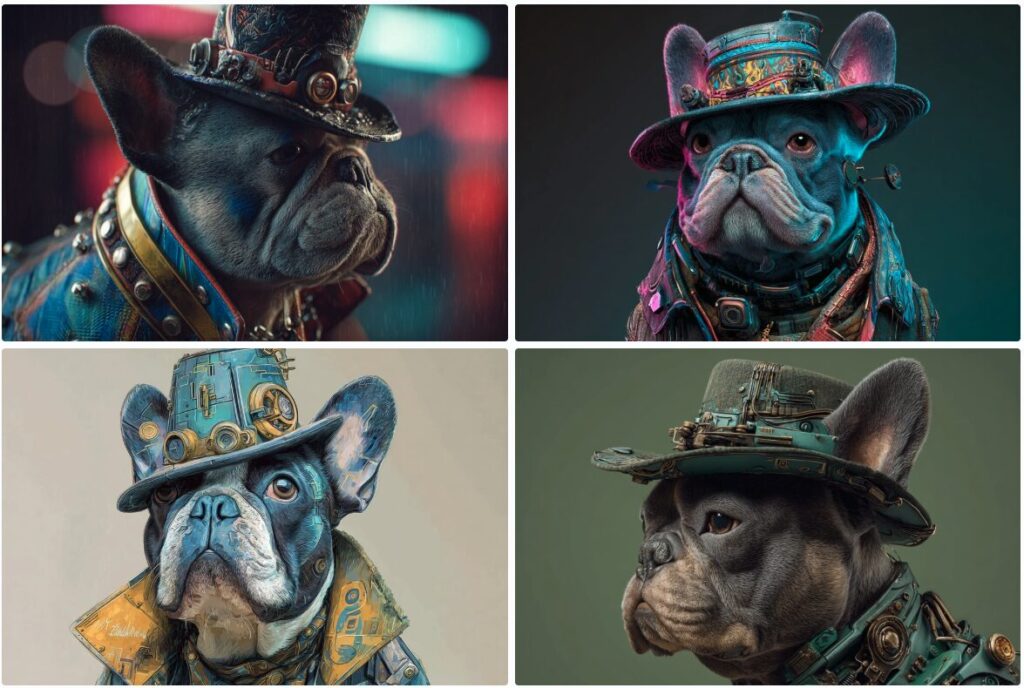 (帽子をかぶったフレンチブルドッグ、サイバーパンク)