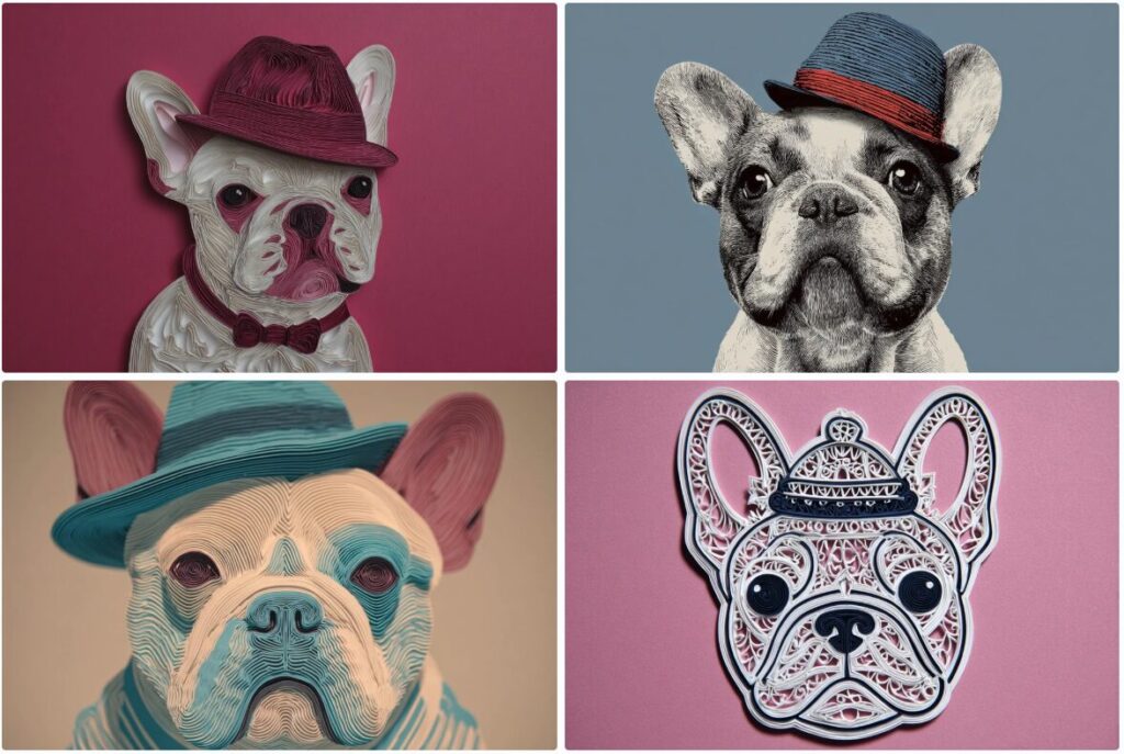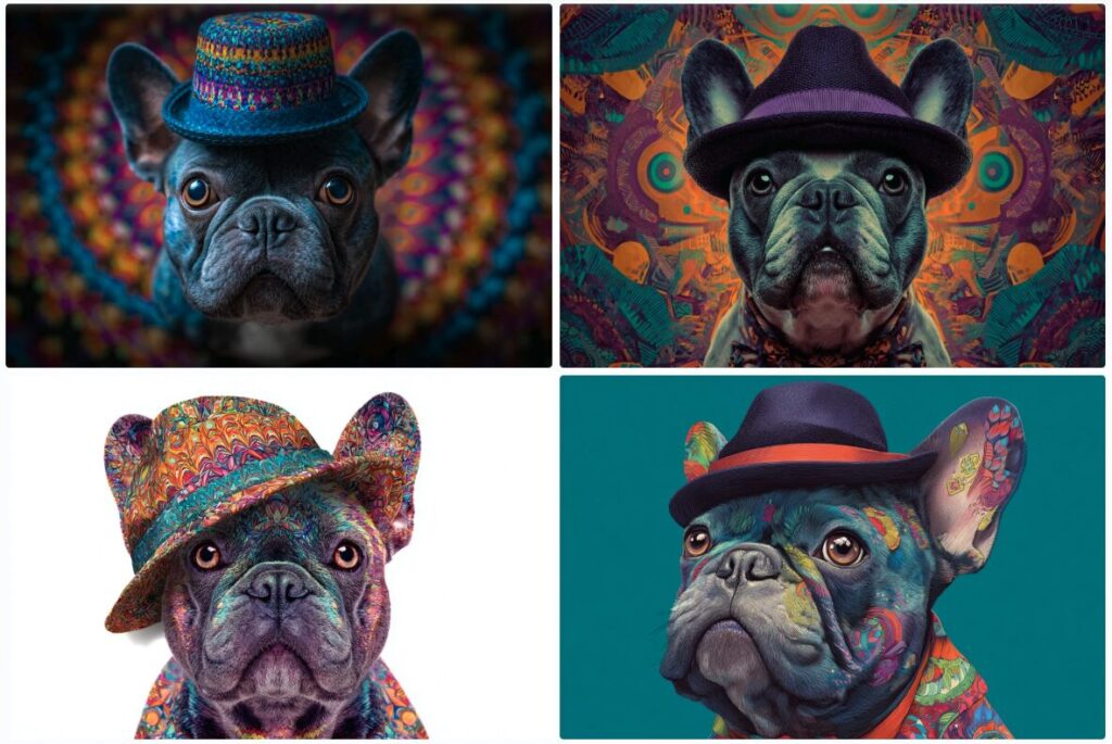 (帽子をかぶったフレンチブルドッグ、万華鏡風)