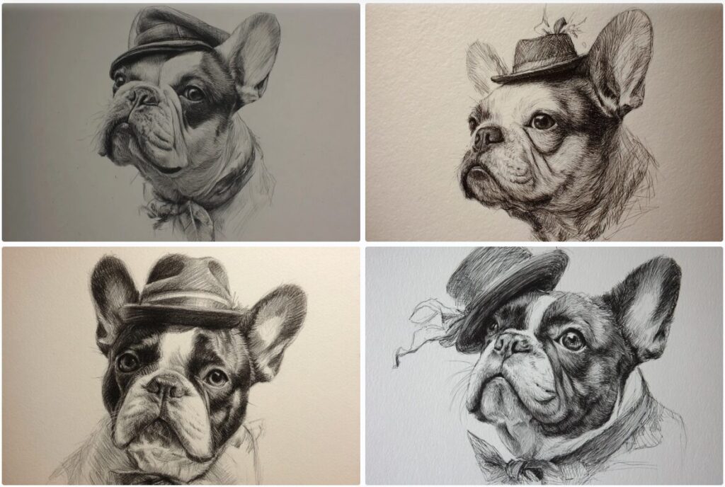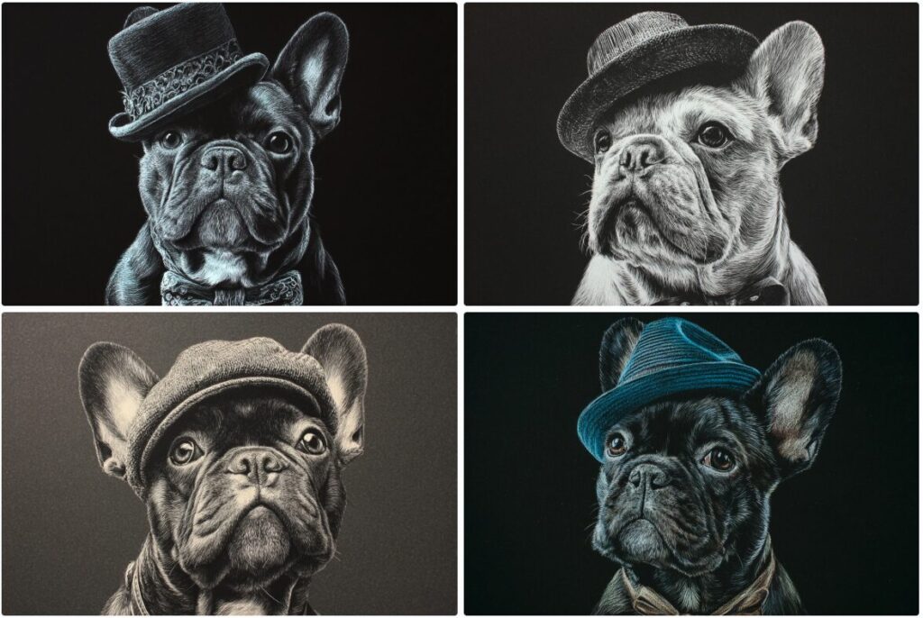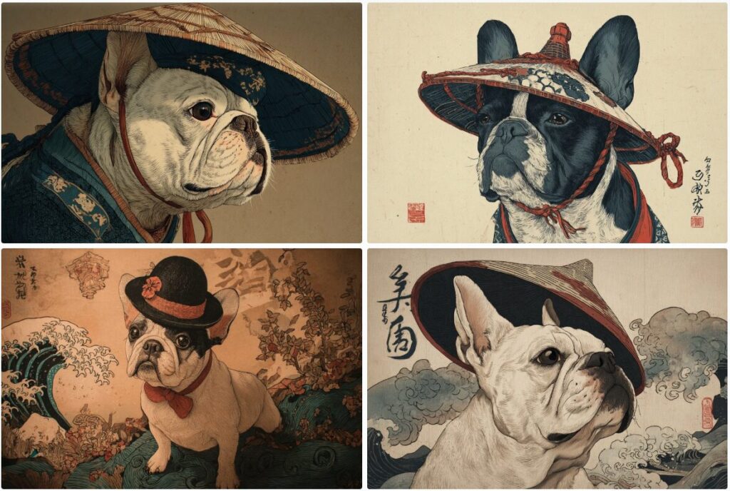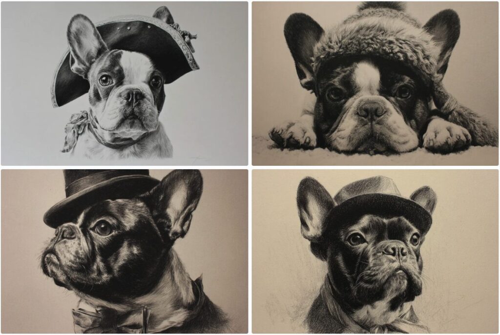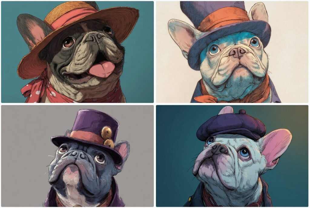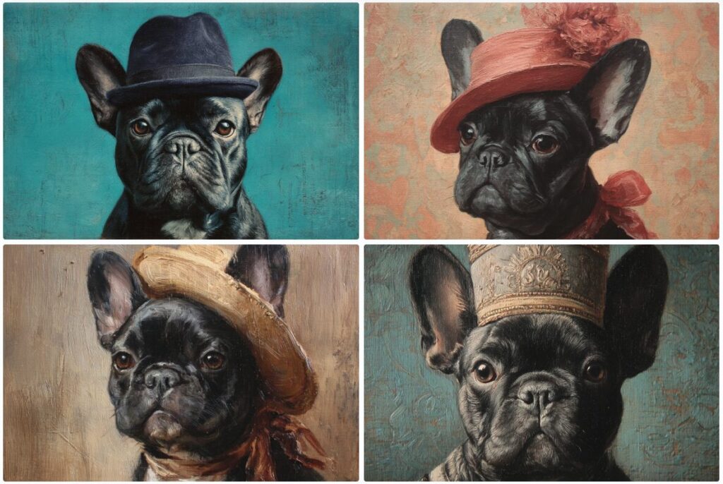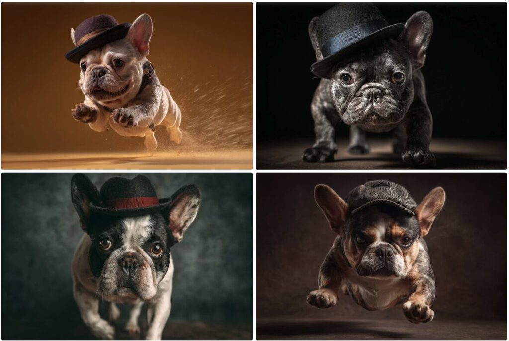 (帽子をかぶったフレンチブルドッグ、動的構図)