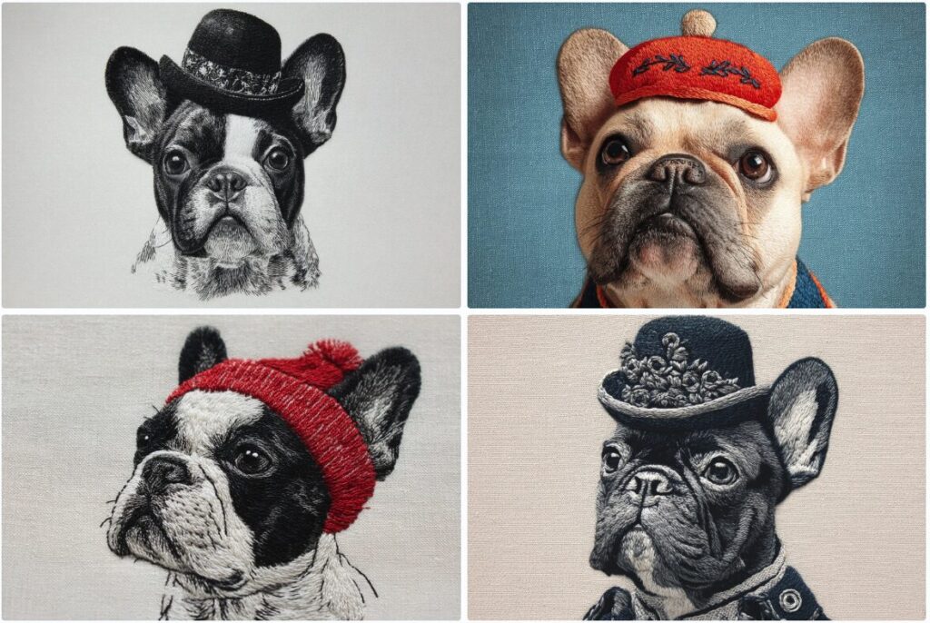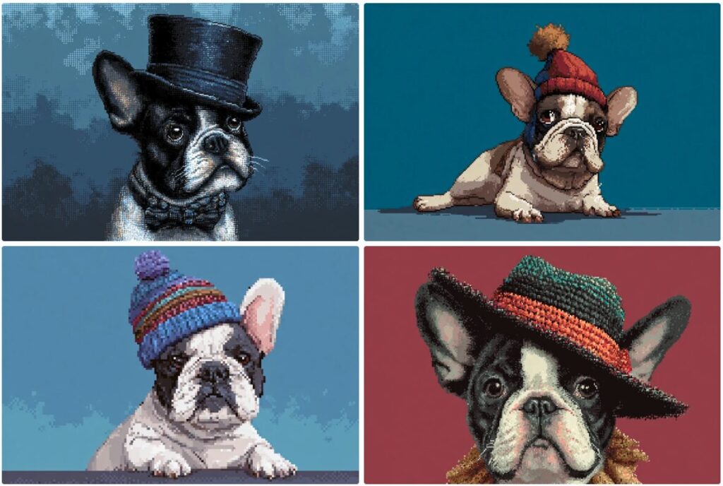 (帽子をかぶったフレンチブルドッグ、ミニマル構図)