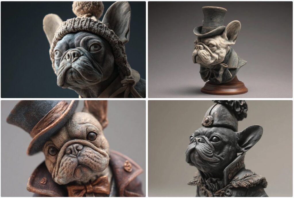 (帽子をかぶったフレンチブルドッグ、Unreal Engine風)