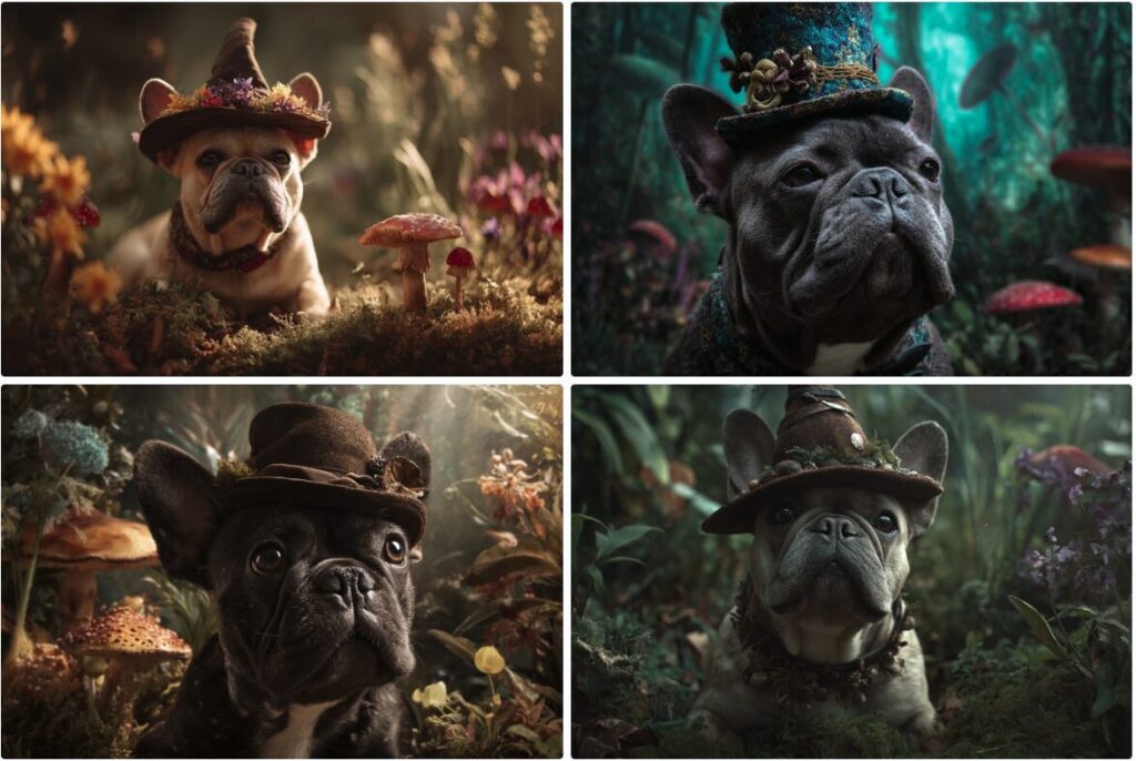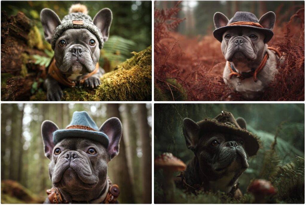 (帽子をかぶったフレンチブルドッグ、魔法の森)