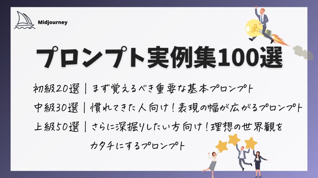 今回はミッドジャーニーで思い通りの画像を生成するためのプロンプトテクニックを100選でご紹介しました。