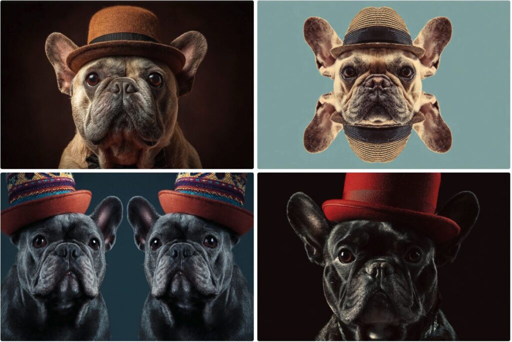 (帽子をかぶったフレンチブルドッグ、シンメトリー構図)