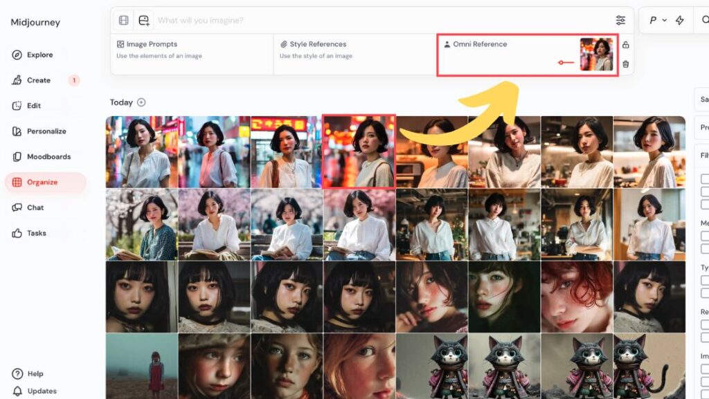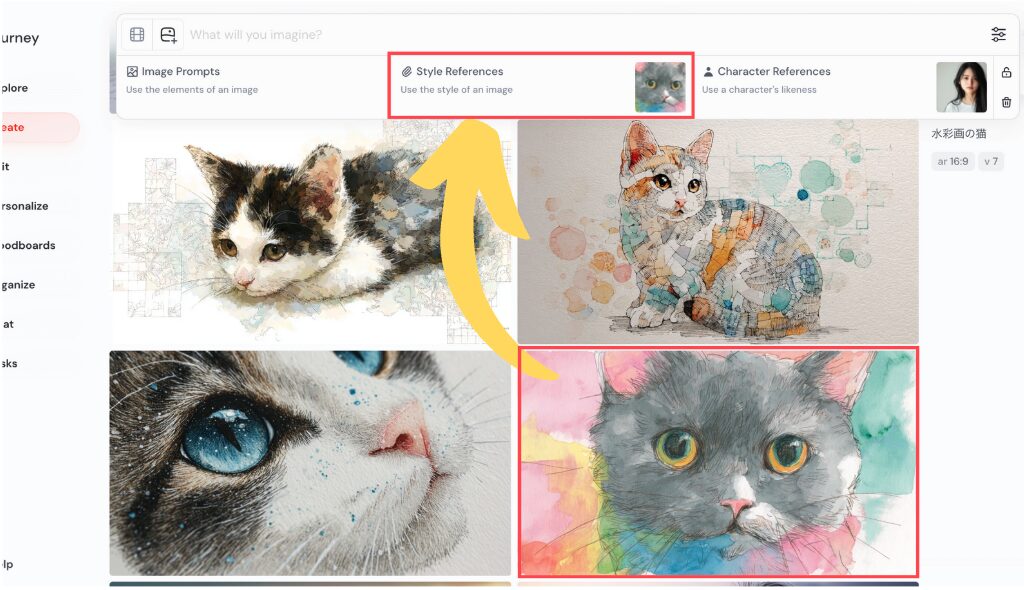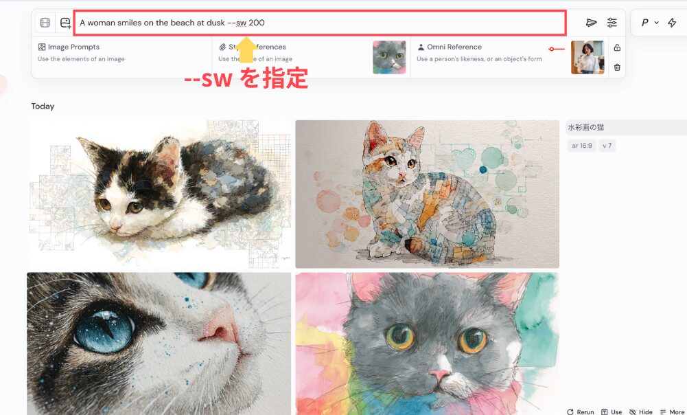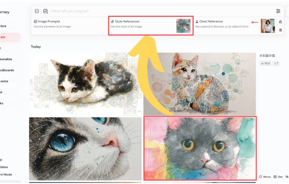 オムニリファレンスは、Midjourneyのバージョン7(V7)でのみ利用できます。