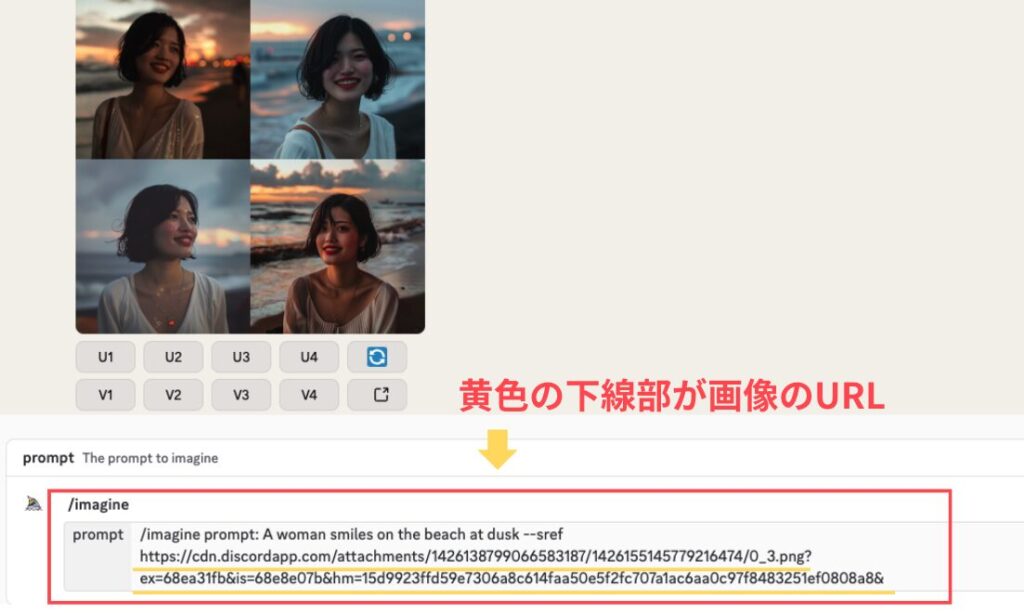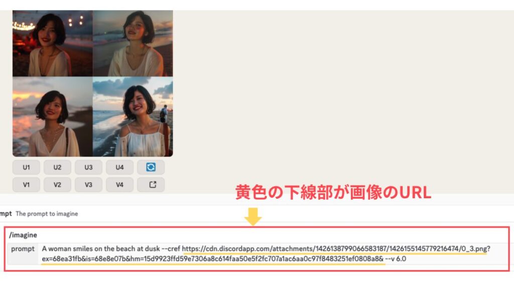 /imagineコマンドでプロンプトを入力- 画像URLとパラメータを追加