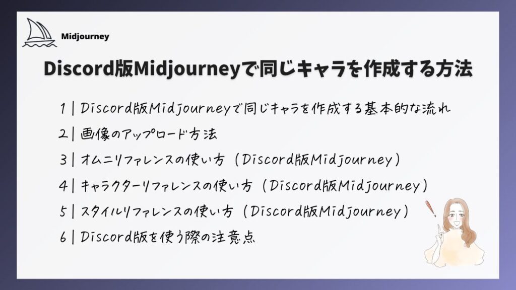 Discord版Midjourneyで同じキャラを作成する基本的な流れ
